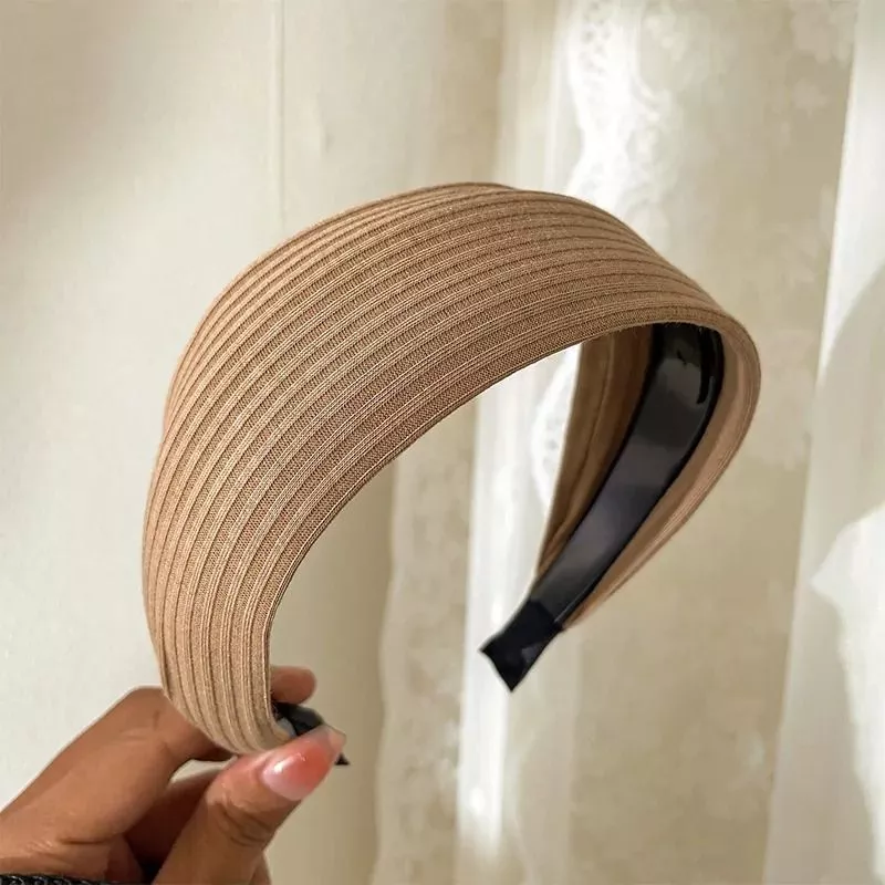 Questo cerchietto bombato beige chiaro in tessuto a coste si distingue per la sua linea pulita e il comfort leggero, perfetto per completare con stile qualsiasi look.