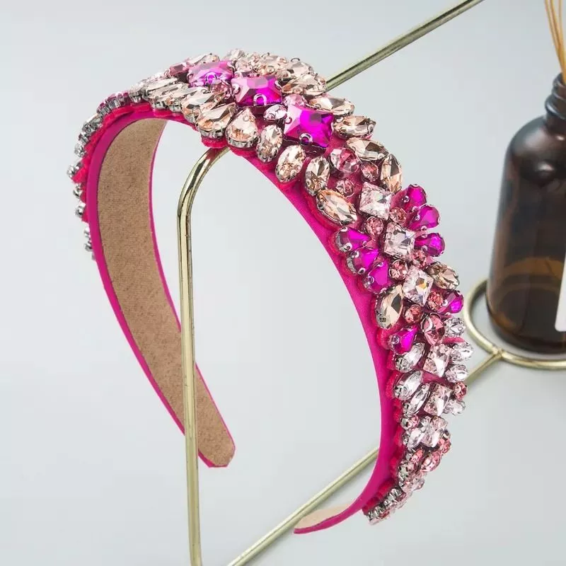Scintillante e raffinato, questo cerchietto fucsia con cristalli rosa e champagne è l’accessorio perfetto per impreziosire il tuo look con un tocco glamour. Le pietre di diverse forme e dimensioni catturano la luce creando un effetto luminoso e sofisticato, ideale per cerimonie, feste o serate speciali. Realizzato con cura e rivestito in tessuto morbido, assicura una vestibilità confortevole e stabile. Un accessorio d’impatto per chi ama distinguersi con eleganza e personalità.
