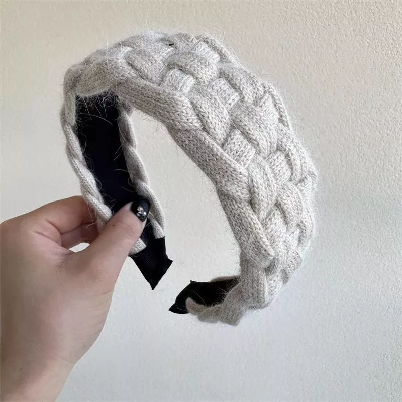 Cerchietto Intrecciato Beige Morbido Lana Sintetica Stile Elegante Donna CF376