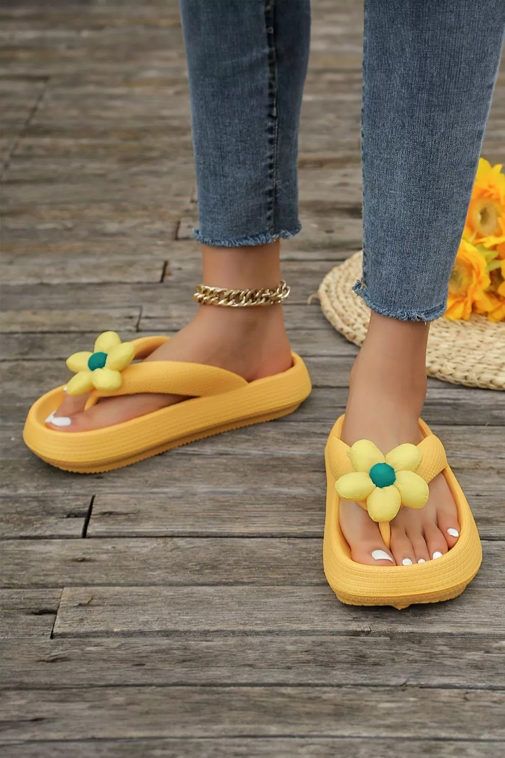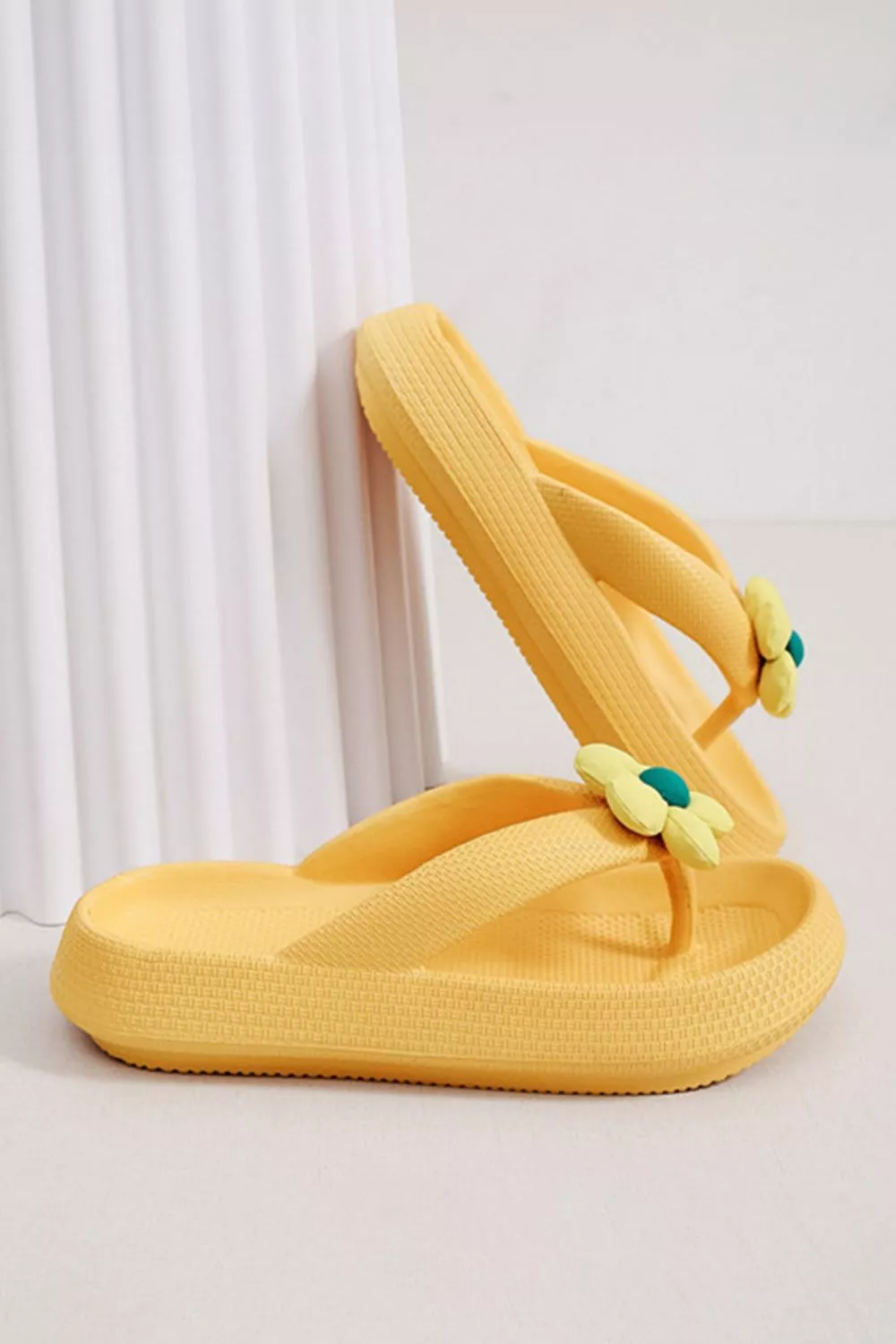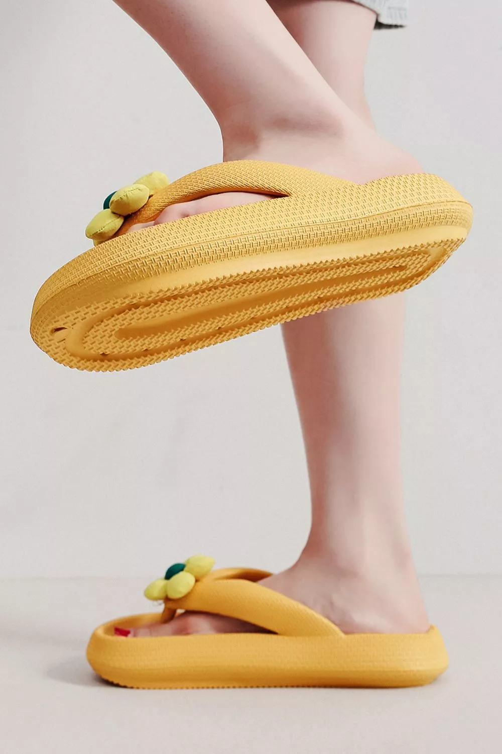 Il design con fascia larga assicura una calzata stabile, mentre la suola antiscivolo migliora l’aderenza su superfici bagnate come bordo piscina o doccia. Il colore giallo acceso aggiunge visibilità e un tocco estivo deciso.