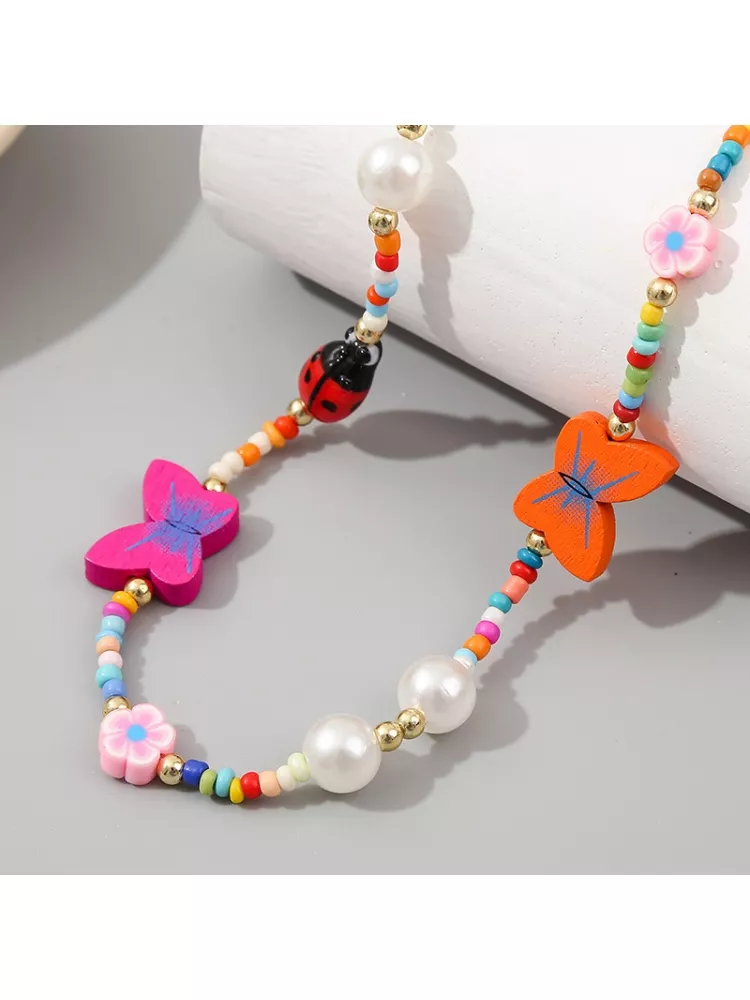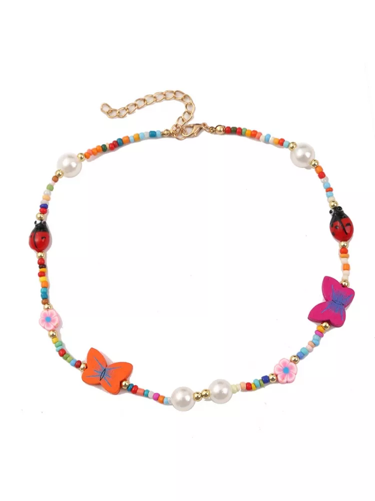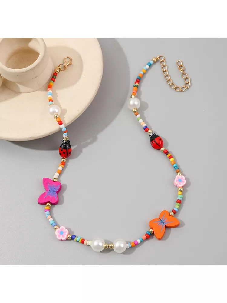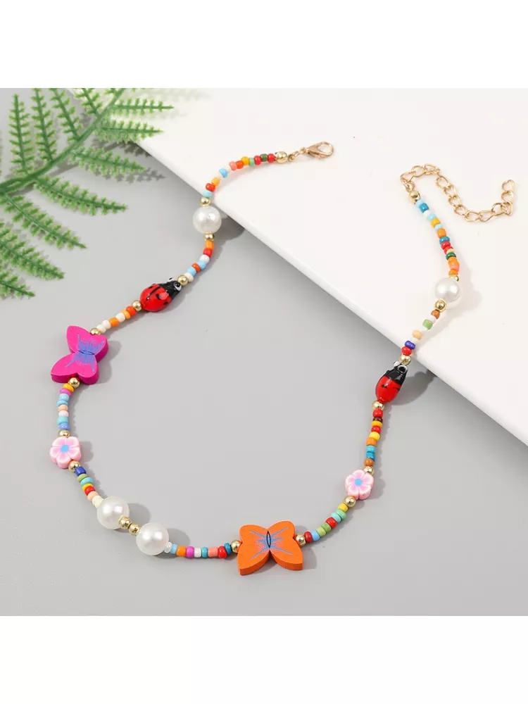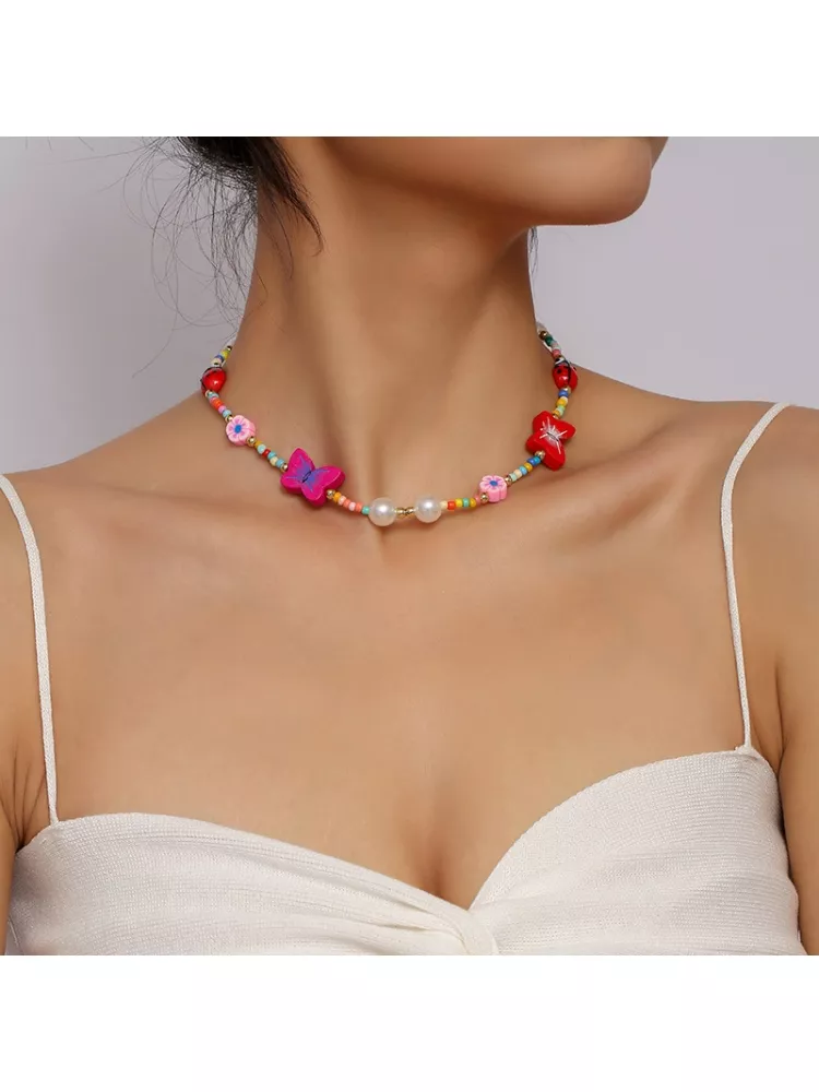 Collana donna girocollo collier perle cuore color oro pietre dure colorate 40198