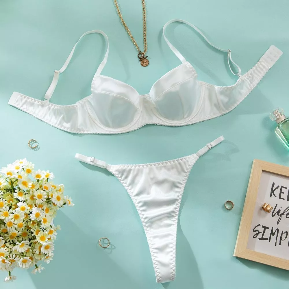 Completo Intimo Donna Bianco Raffinato Con Reggiseno E Perizoma Minimal CF66072
