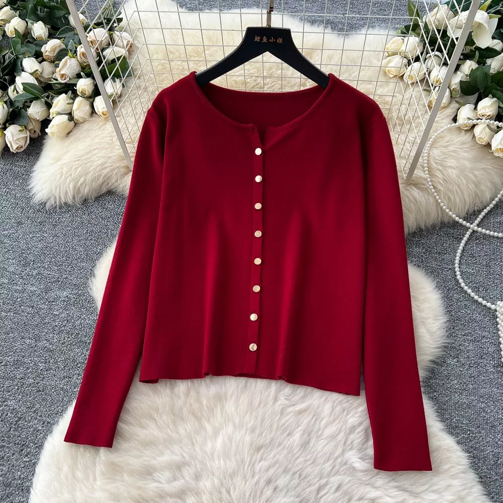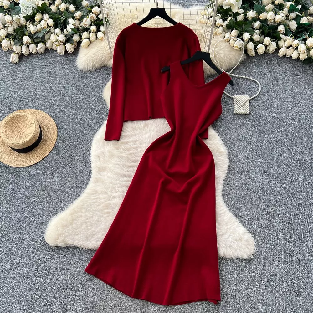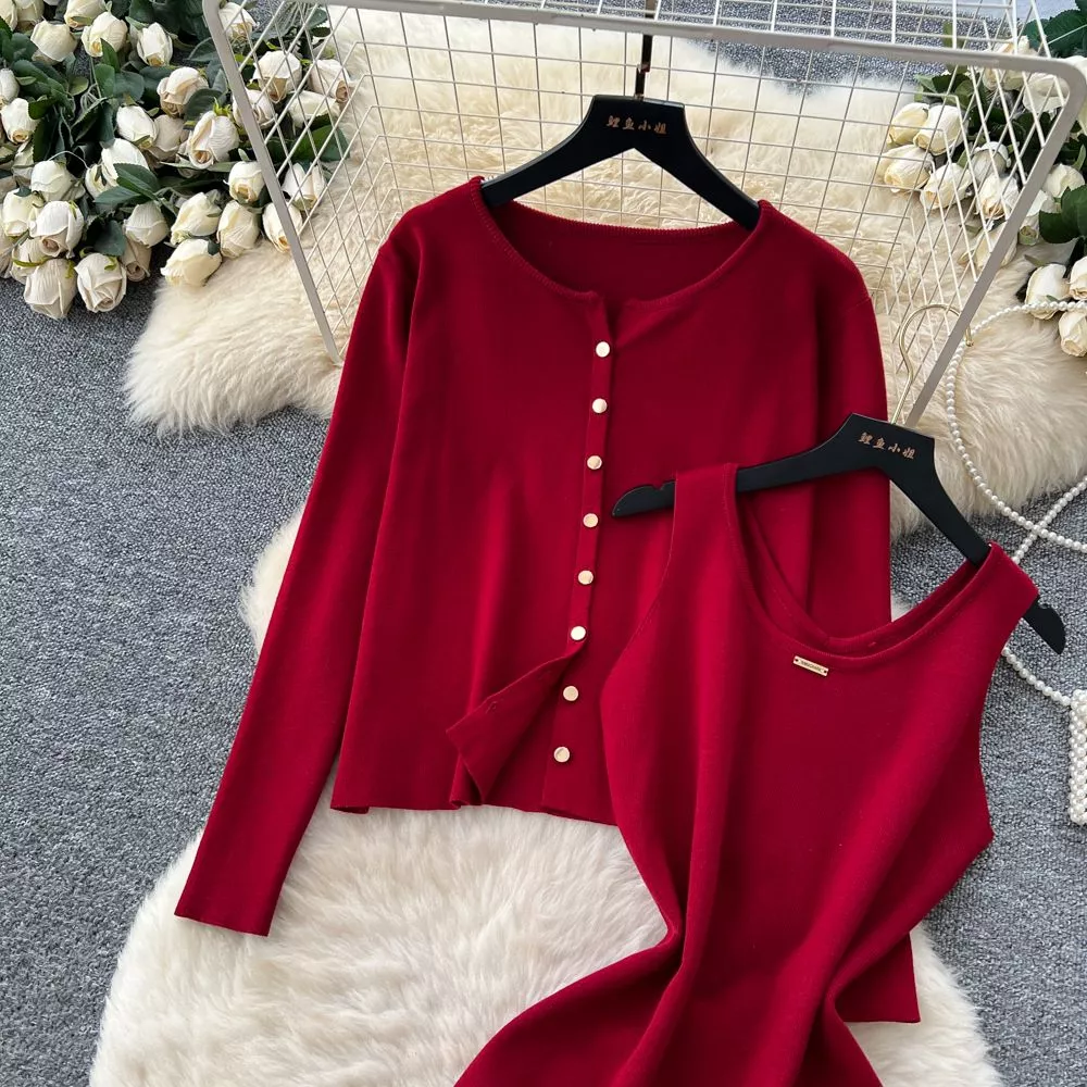 Completo Abito Lungo E Cardigan Maglia Rosso Chic Perfetto Per Eventi CF60443