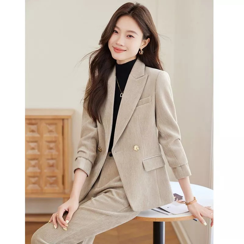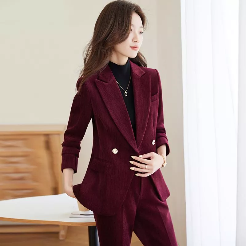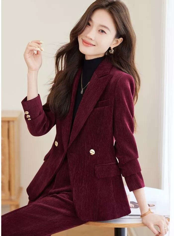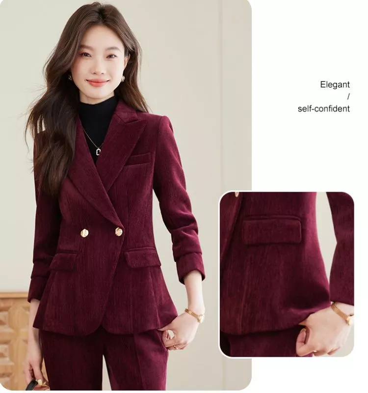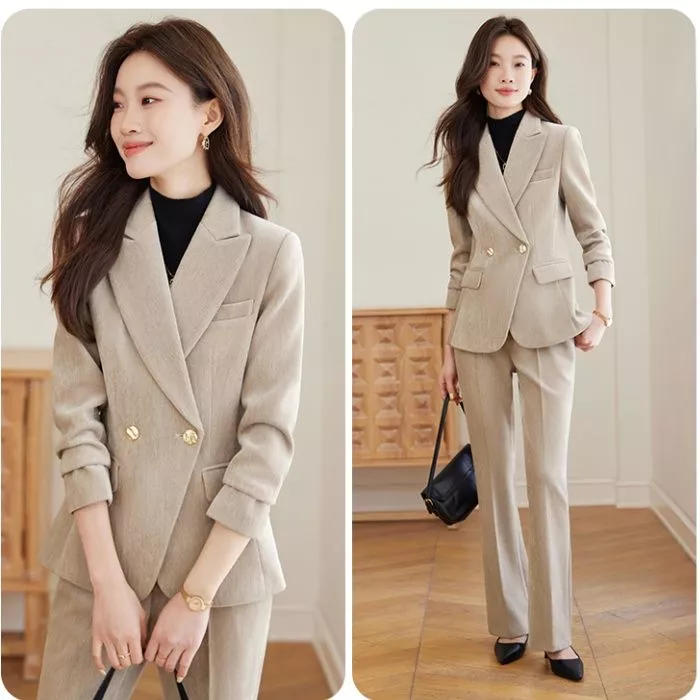 Questo completo donna a due pezzi unisce eleganza e praticità in un look impeccabile. La giacca doppiopetto con bottoni dorati dona un tocco sofisticato e professionale, mentre il pantalone dritto assicura comfort e linee raffinate. Disponibile in nero, avorio e vino-rosso, è il capo ideale per outfit da ufficio, meeting di lavoro o eventi formali. Un set versatile che valorizza la silhouette con uno stile moderno e senza tempo.