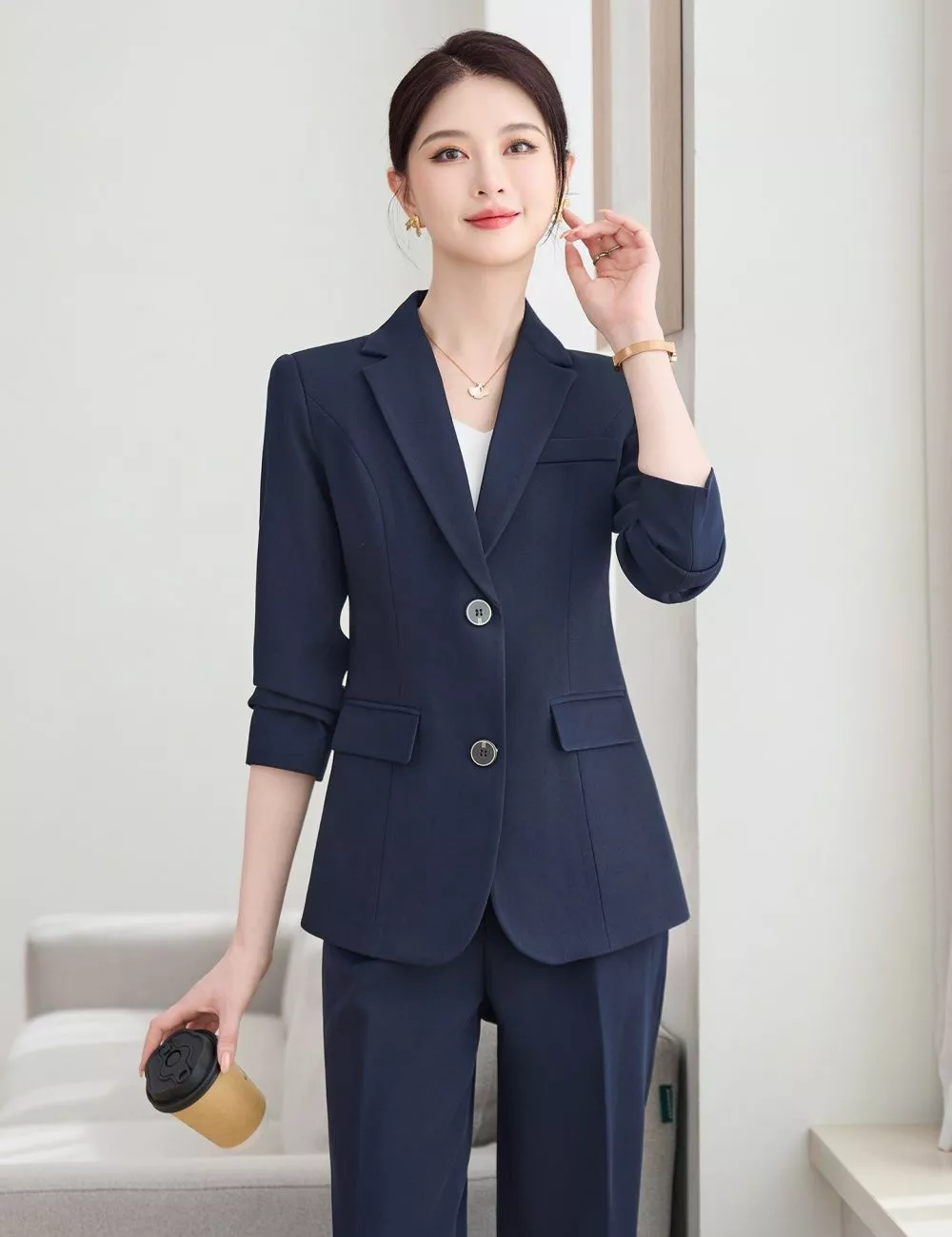 Completo Donna Blu Navy Elegante Giacca Pantaloni Look Ufficio CF66731