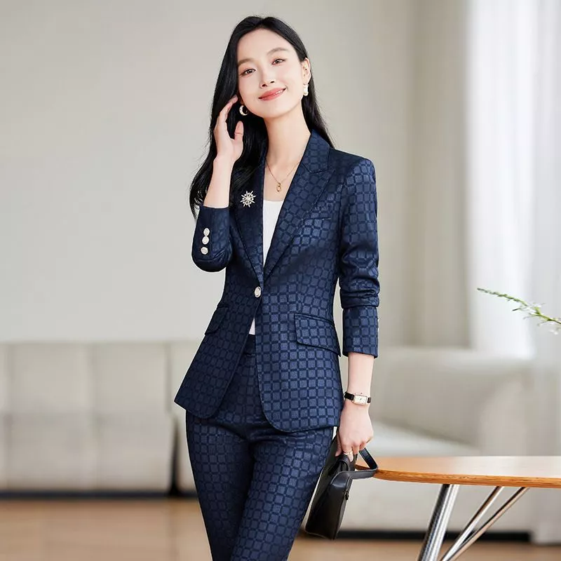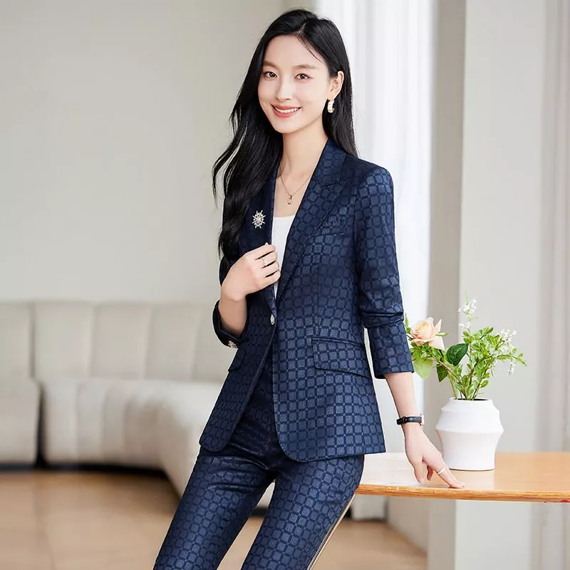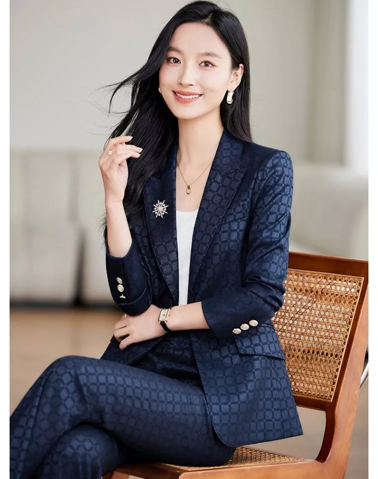 Completo Donna Blu Slim Elegante Con Giacca E Pantalone A Zampa Ufficio CF54414