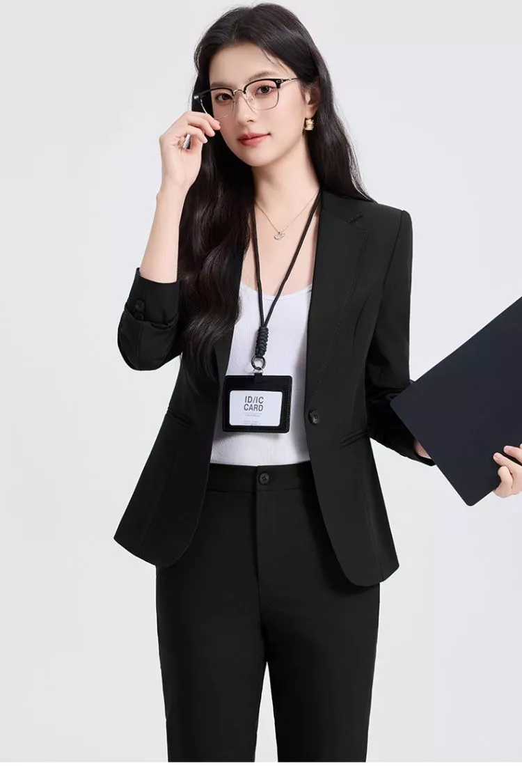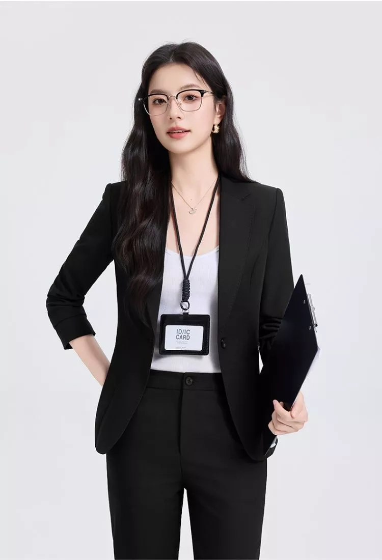 Completo Donna Elegante Con Blazer Slim E Pantalone Nero Ufficio CF68506