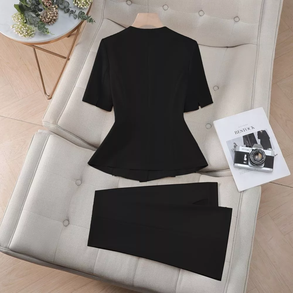 Completo Donna Elegante Con Giacca Peplum E Pantalone Nero CF68296
