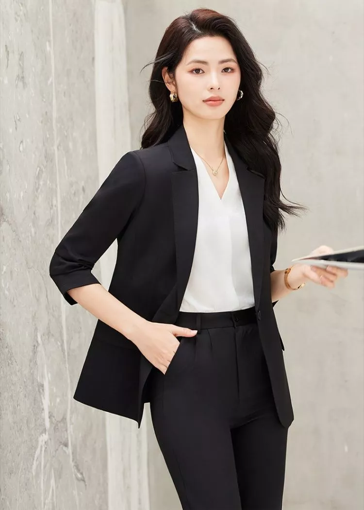 Completo Donna Elegante Giacca E Pantalone Slim Fit Nero Ufficio CF68306