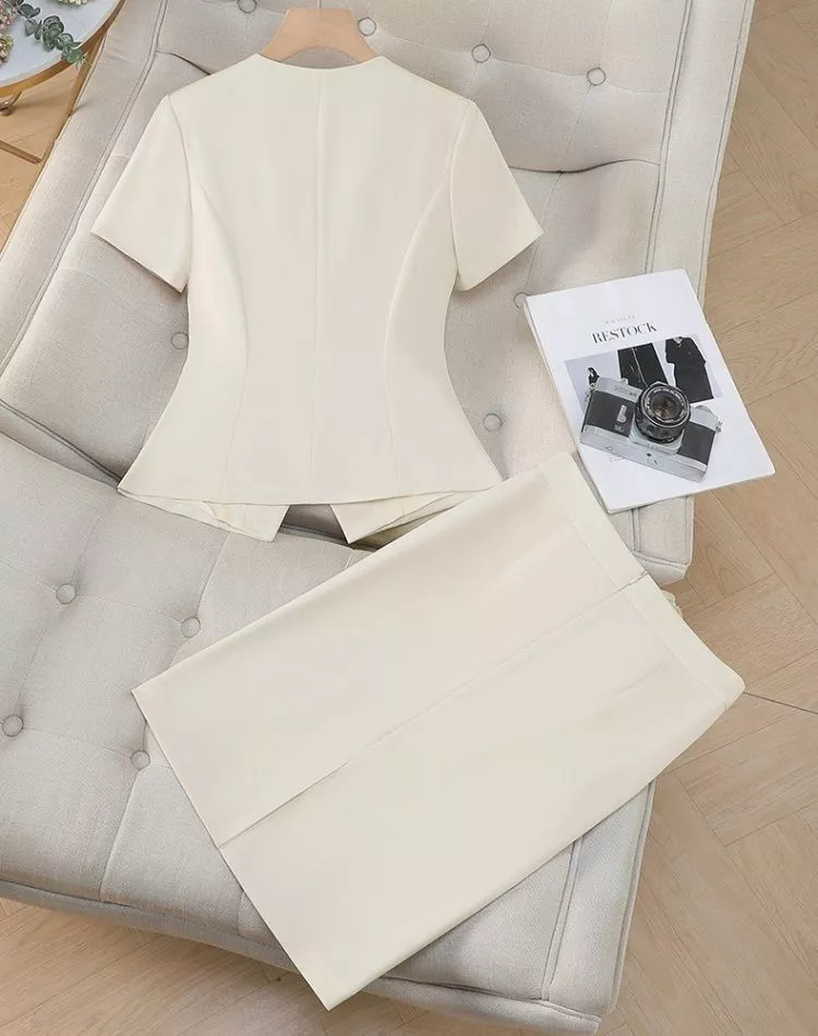 Completo Donna Elegante Giacca Manica Corta E Gonna Ufficio Albicocca CF67521