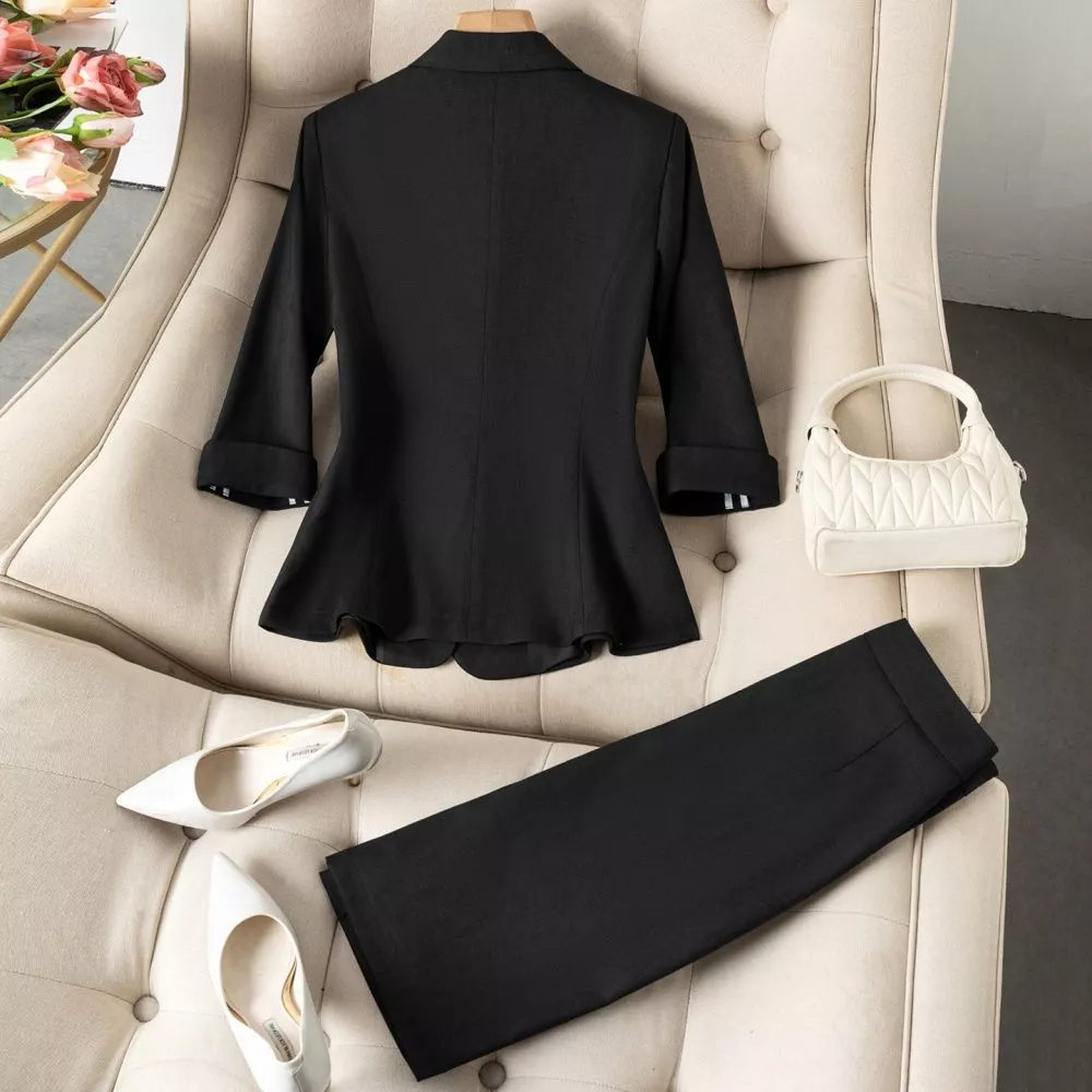 Un completo elegante e versatile che unisce stile professionale e femminilità, perfetto per chi desidera un outfit sofisticato e facile da abbinare.