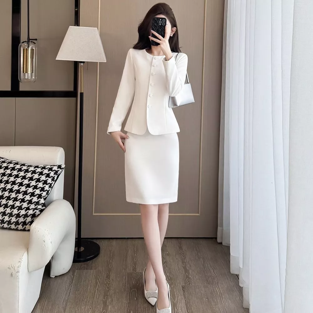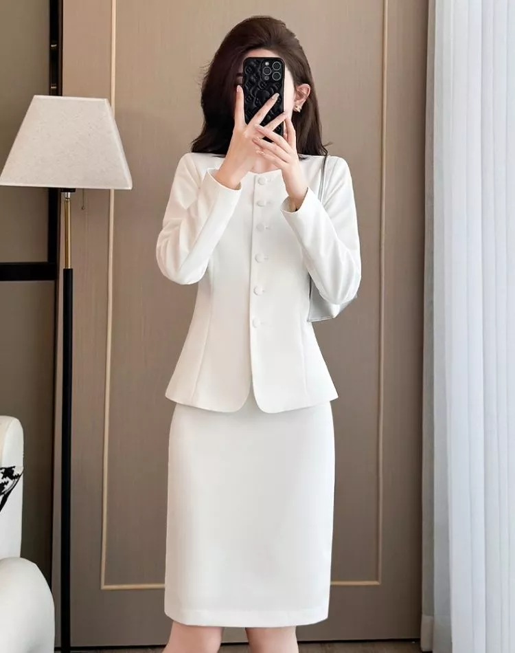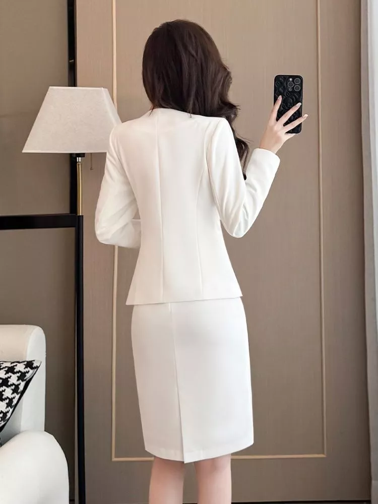 Completo Donna Elegante Ufficio Tailleur Gonna E Blazer Bianco CF66913