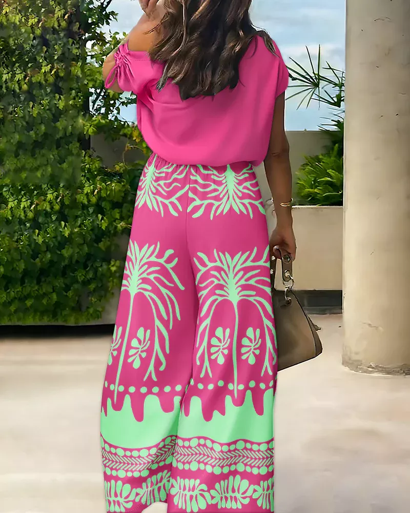 Completo Donna Estivo Fucsia e Verde Tropicale con Top e Pantalone Ampio NK7P4X