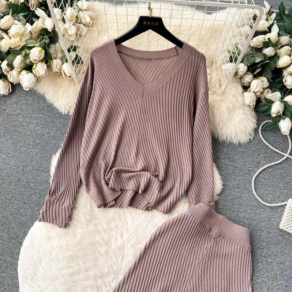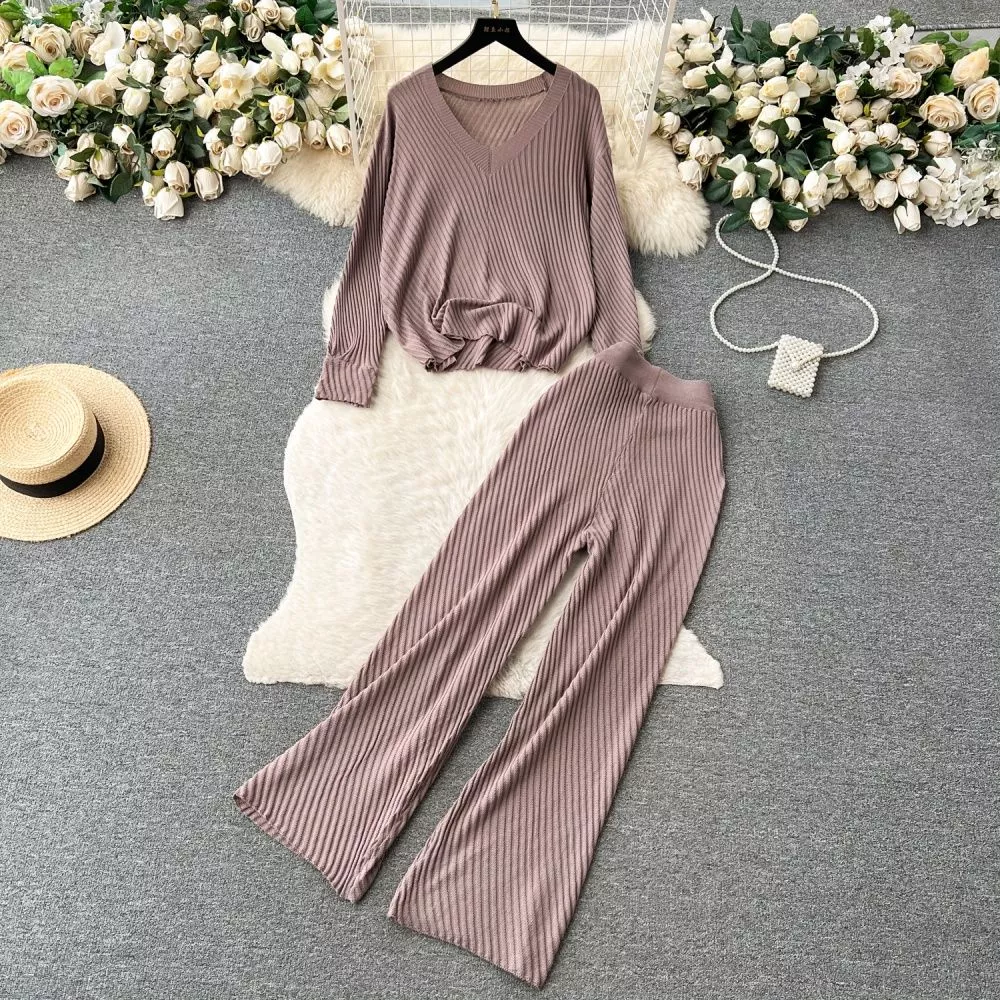 Completo Donna Maglia Felpa Pantaloni Casual Marrone Maglia Coste Comodi 79295