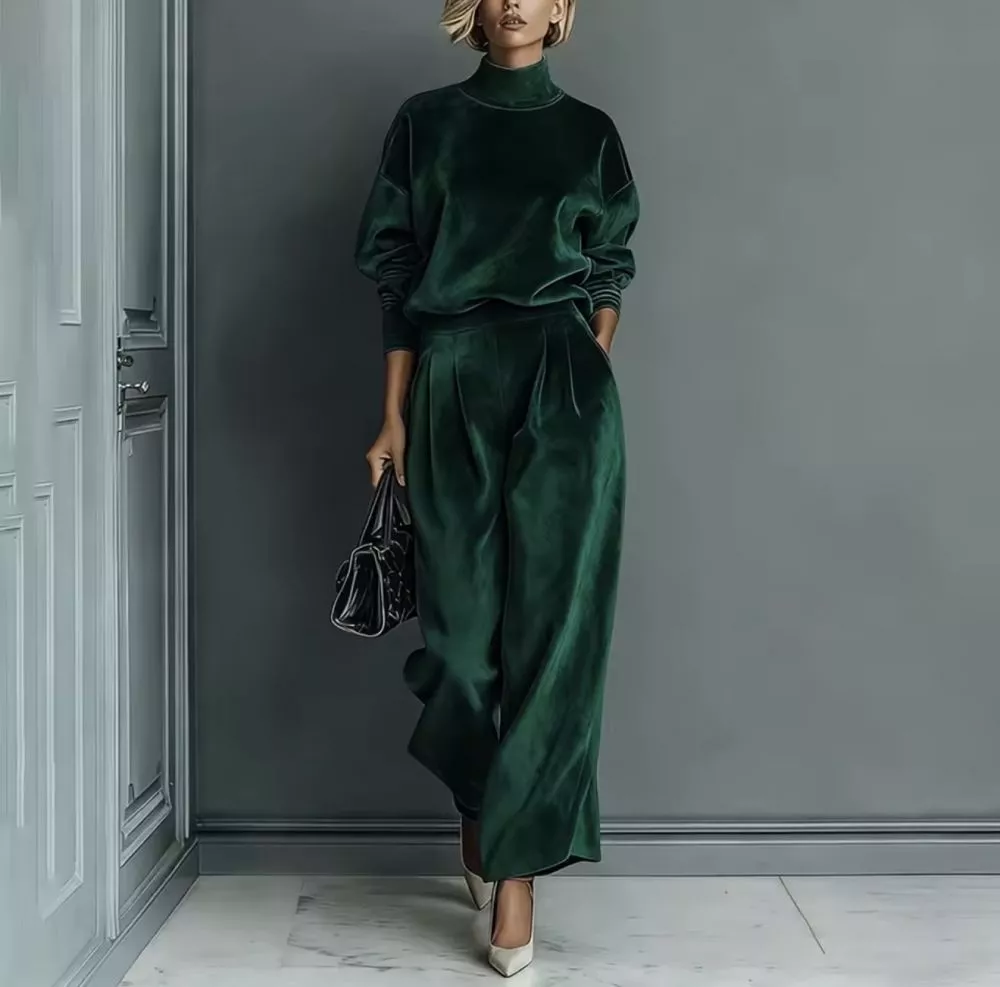 Completo Donna Verde Effetto Velluto Virale Look Raffinato Pantalone Lungo 63927