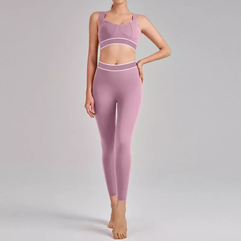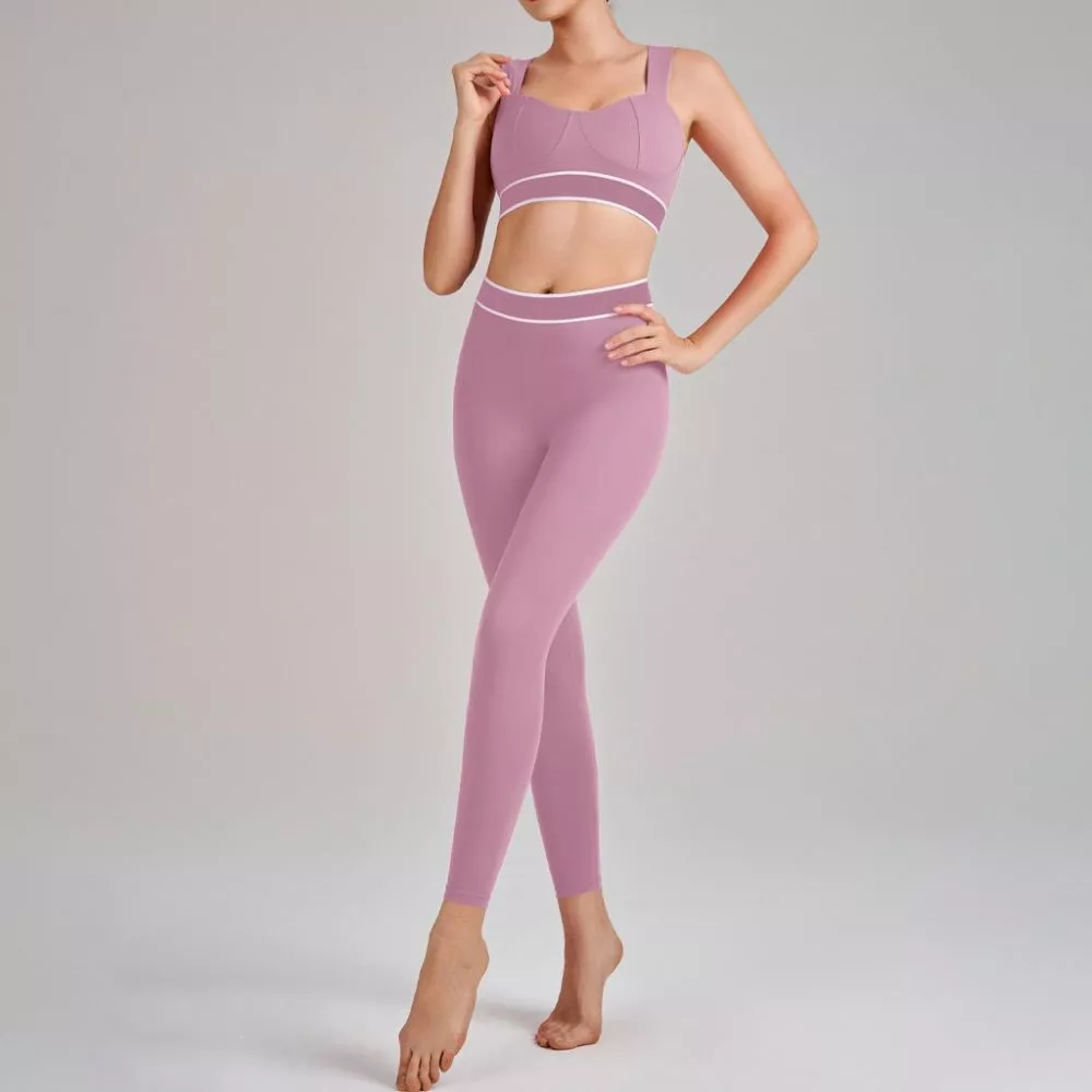 Completo Fitness Donna Set Leggings Vita Alta Bra Sportivo Modellante T102509273