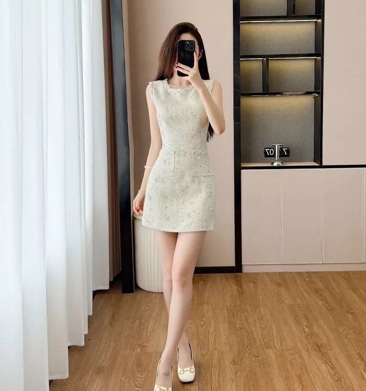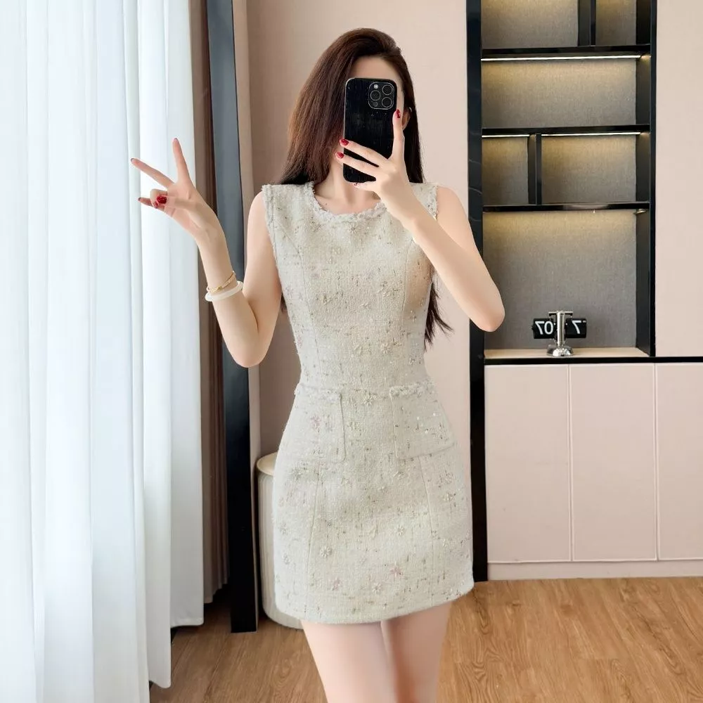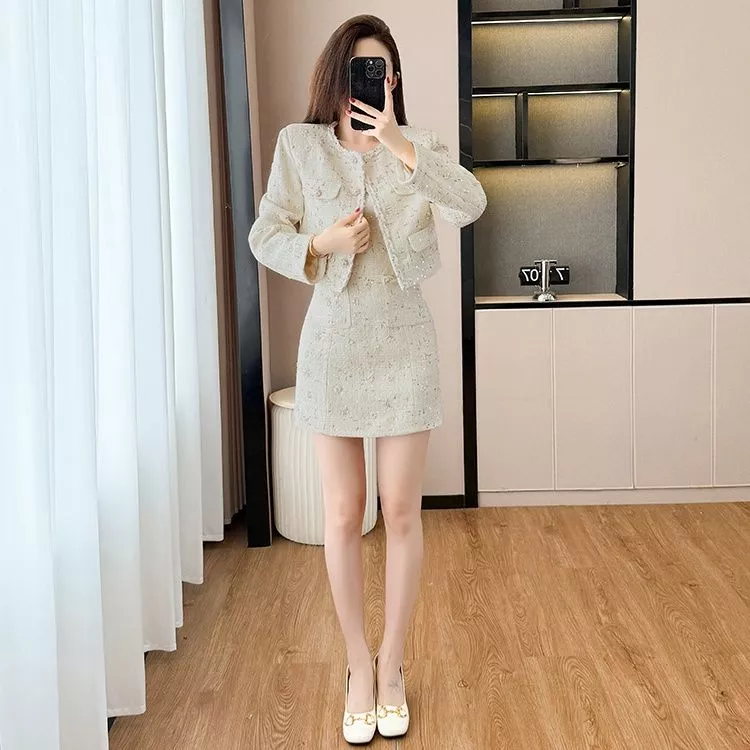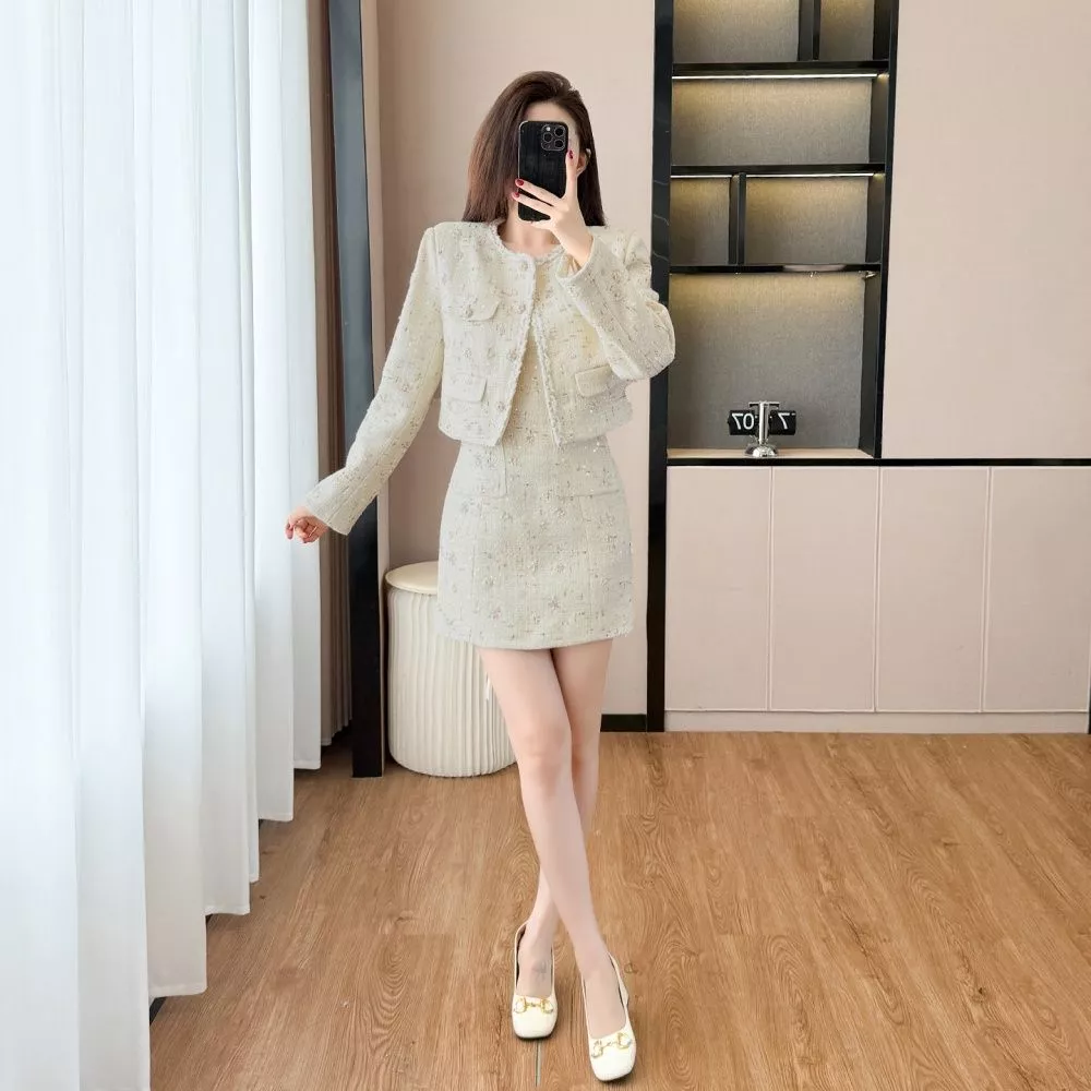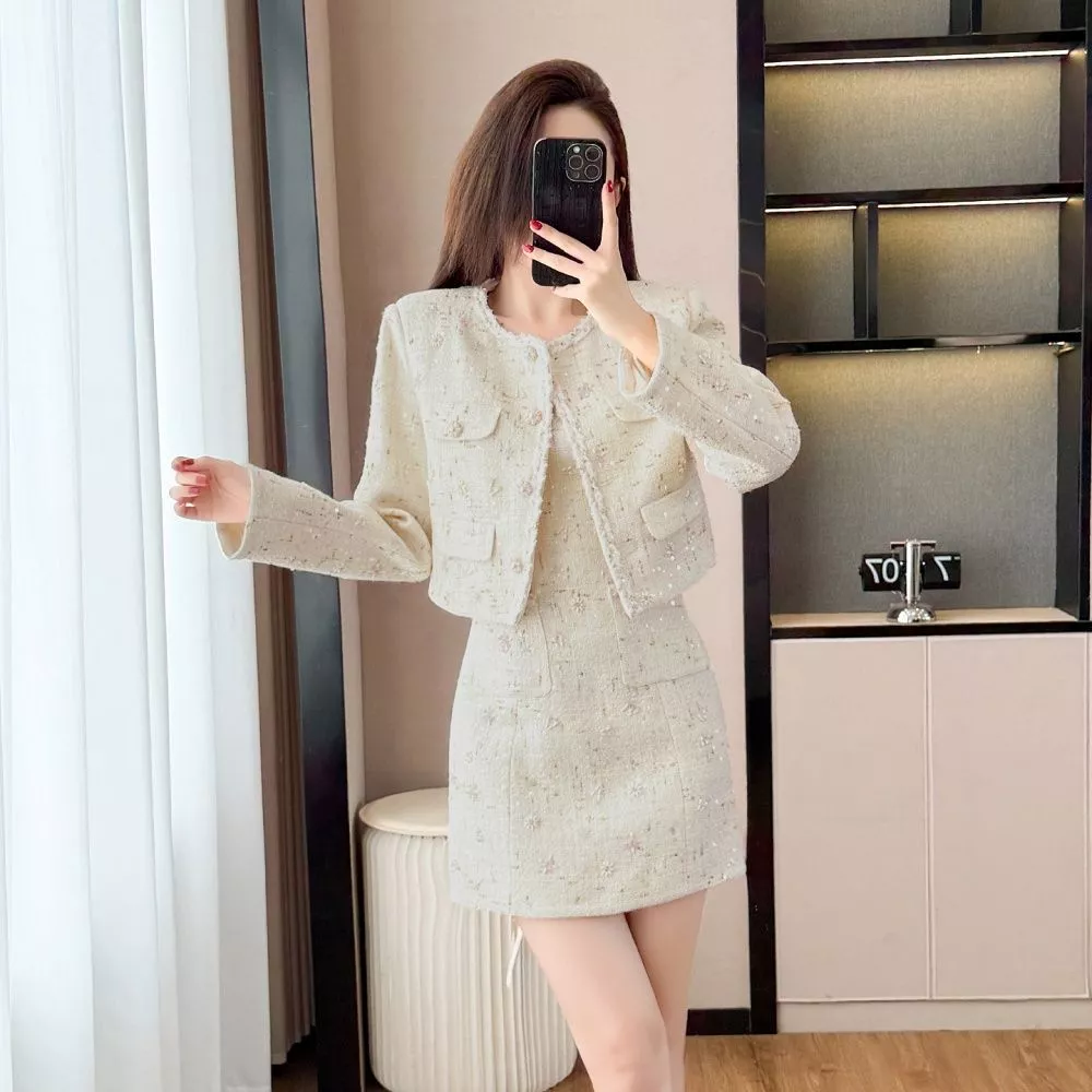 Completo Invernale Donna Elegante Tweed Giacca Corta E Abito Smanicato CF57528