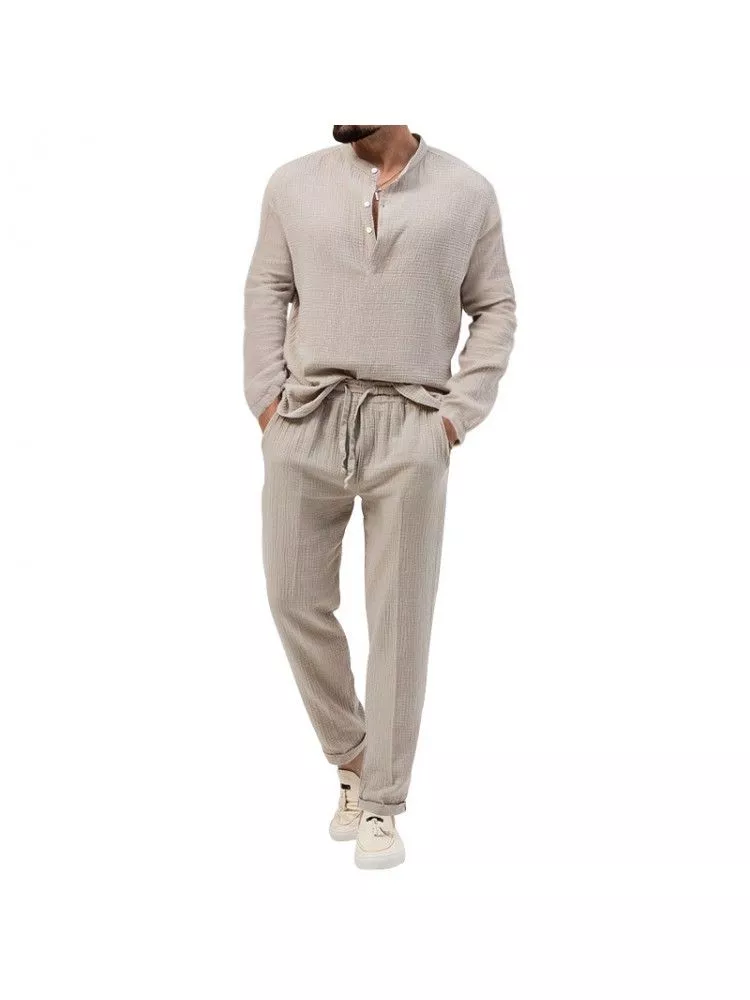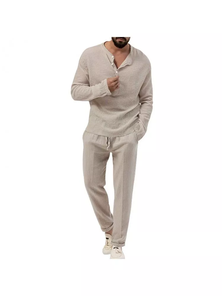 Completo Sportivo Uomo Set Maglia Camicia e Pantaloni Beige Casual 071707