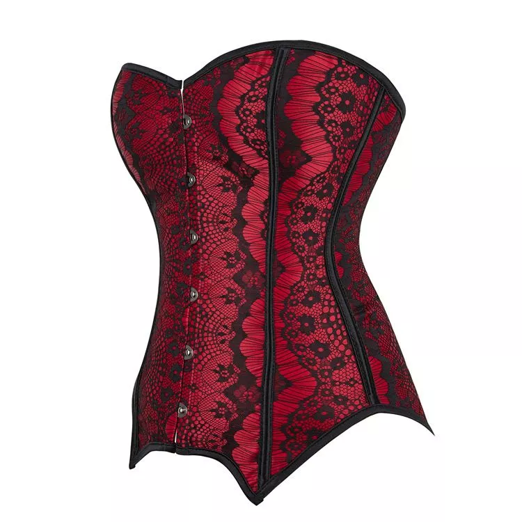 Corpetto Bustino Burlesque Stringivita Sexy Rosso Stecche Raso Top Pizzo 75298