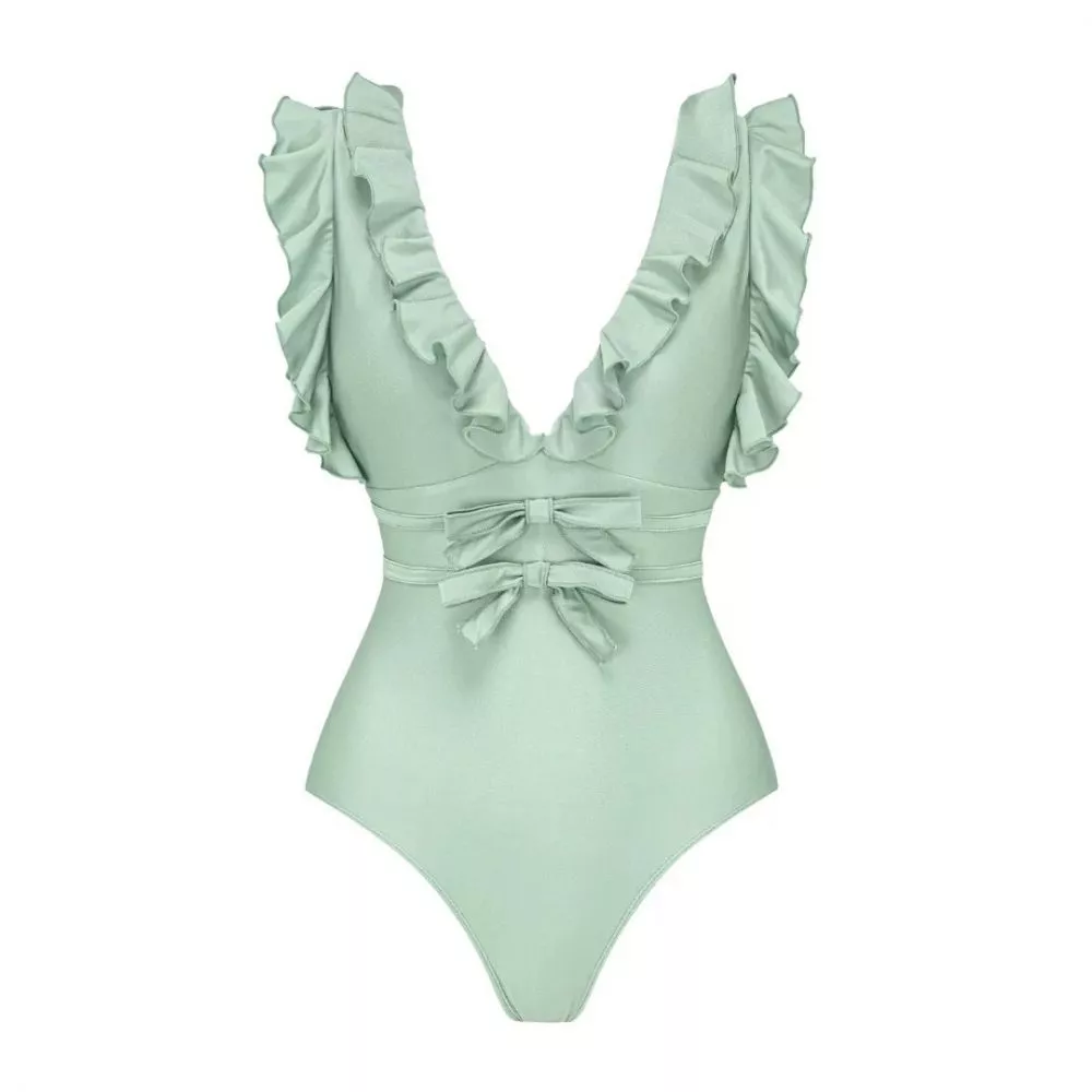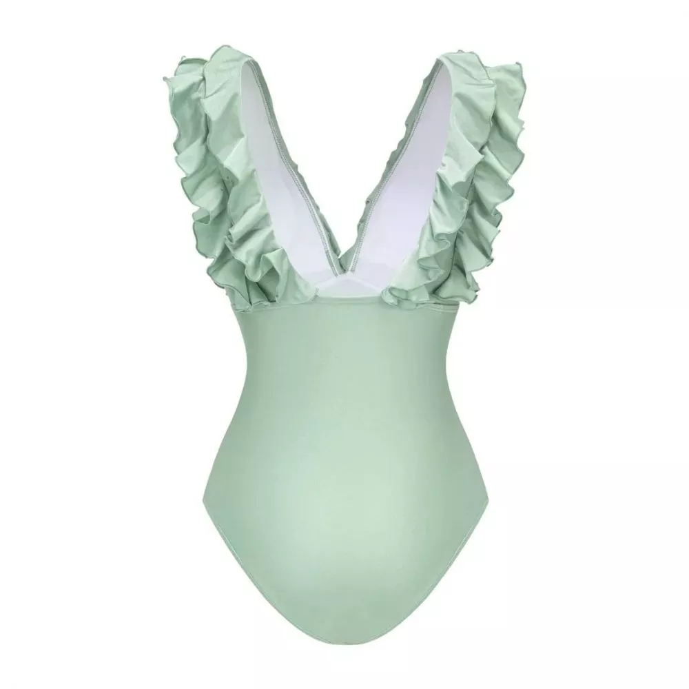Le linee morbide e lo scollo armonioso creano un effetto raffinato e naturale, ideale per chi cerca uno stile curato ma non eccessivo. Il costume aderente segue le forme offrendo comfort e una vestibilità equilibrata.