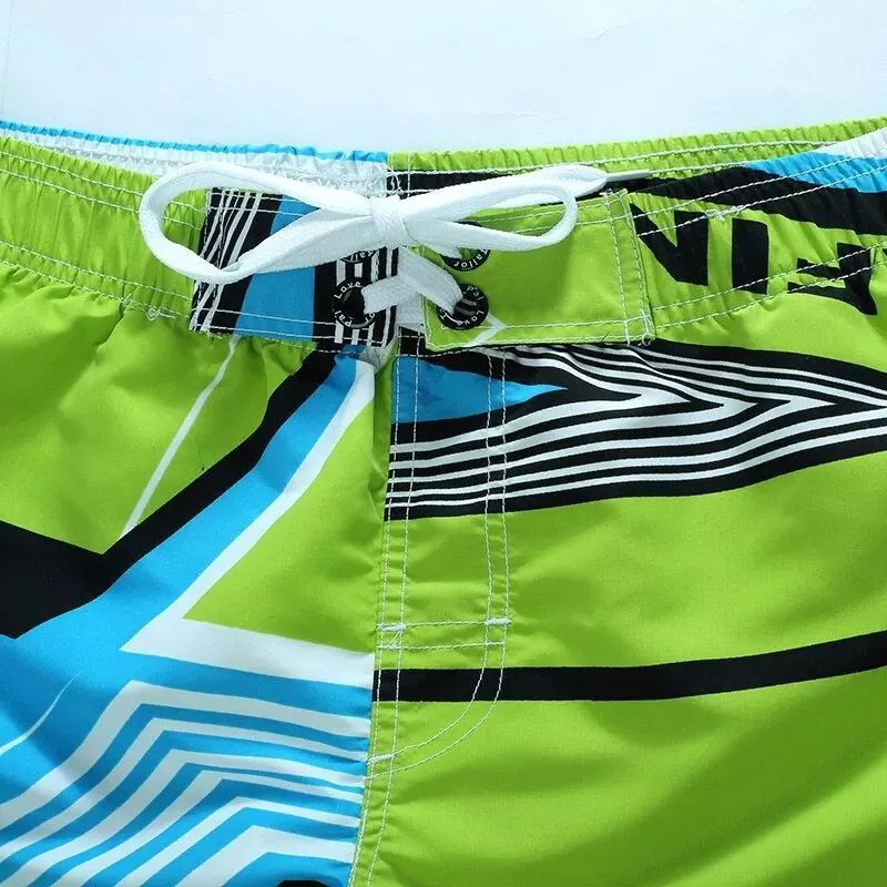 Costume mare uomo dal design sportivo e grafica color block ad alto impatto visivo. Il taglio corto sopra il ginocchio valorizza la silhouette mantenendo comfort e libertà di movimento in spiaggia, piscina o durante le vacanze.