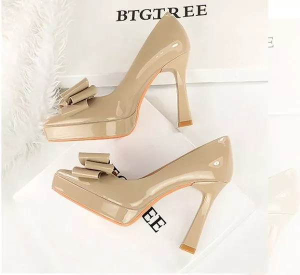 Décolleté Donna Eleganti Kaki Plateau E Fiocco Tacco Alto 12 cm Lucide CF65326