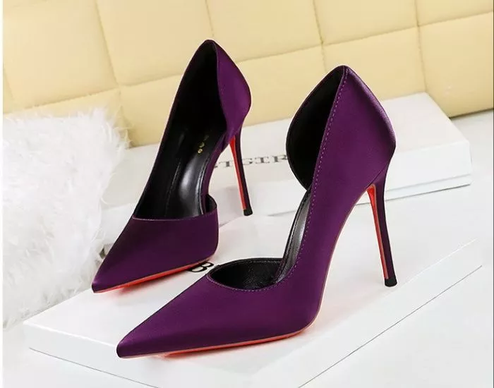 Decollete Raso Porpora Tacco 10 Cm Design Aperto Chic Moda Donna CF60316