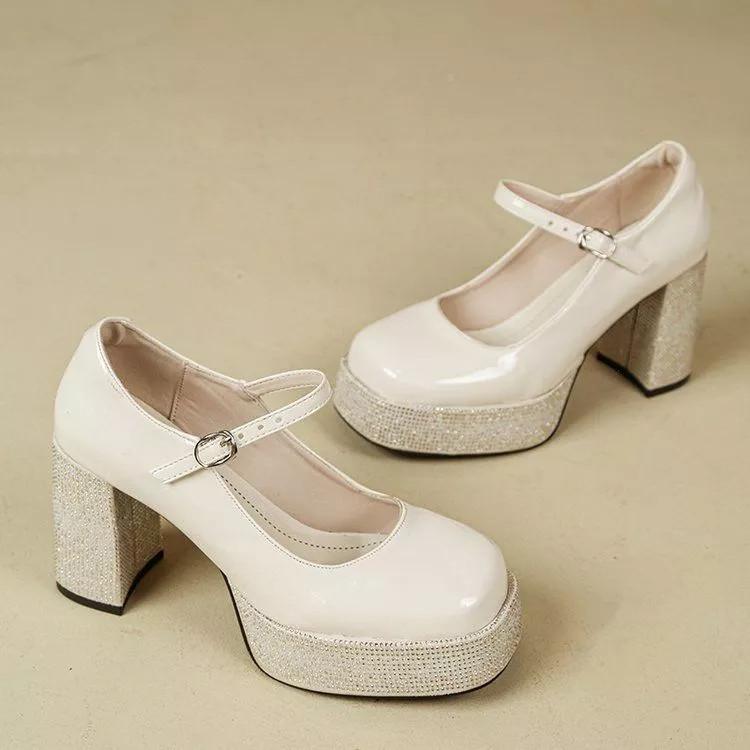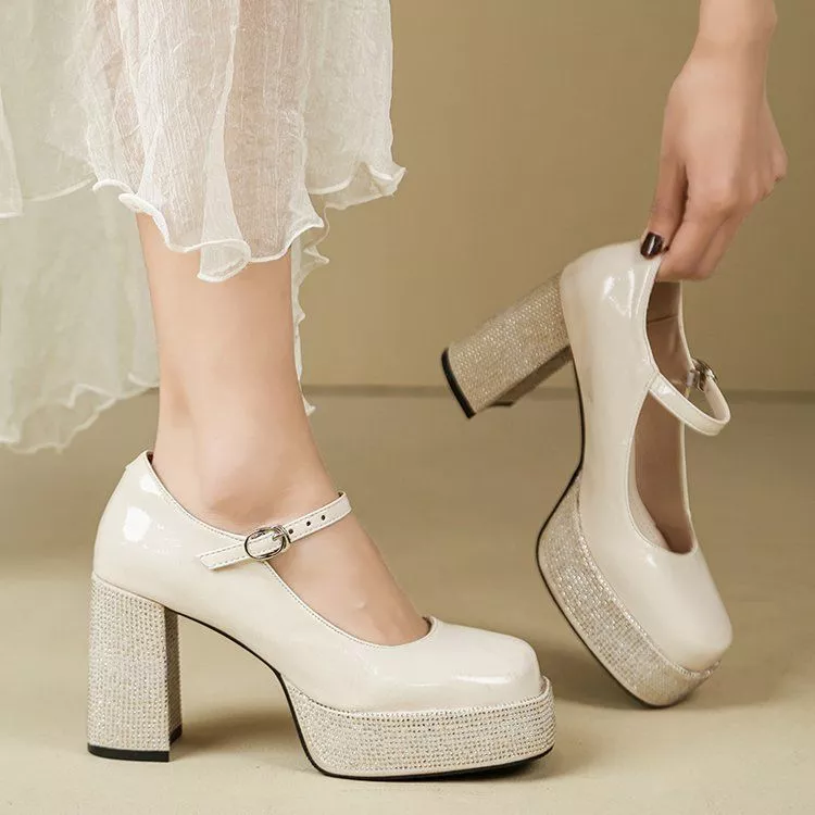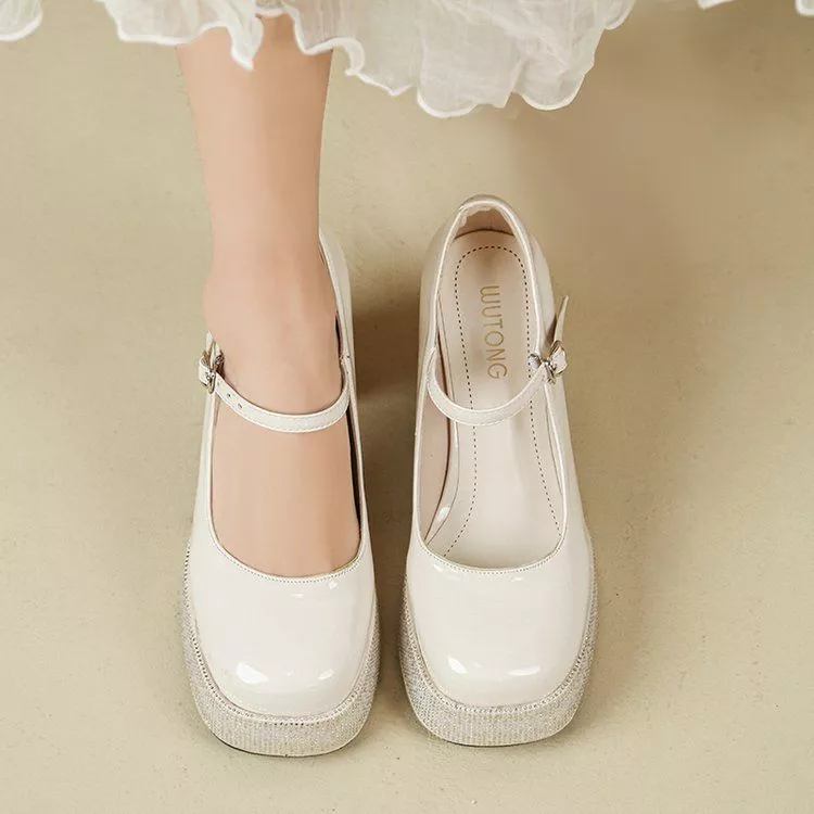 Scarpe decolte con cinturino in stile Mary Jane reinterpretate in chiave moderna con platform strutturata e tacco largo da 9 cm. Il design slanciato valorizza la figura mentre la base anteriore rialzata garantisce maggiore equilibrio e comfort durante la camminata.