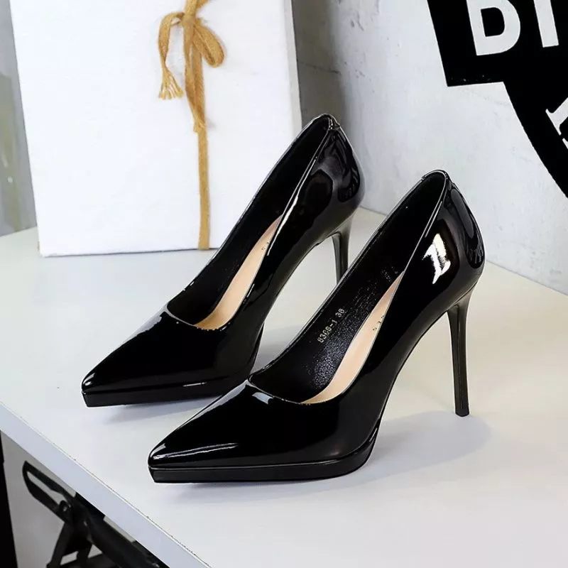 Decolte Nere Lucide Tacco 11 cm Eleganti In Pelle Sintetica CF56865