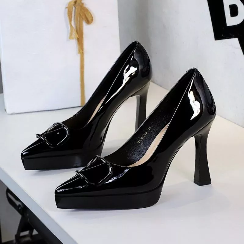 Decolte Donna Eleganti Nere Con Plateau Vernice Tacco Alto 12 cm CF65358