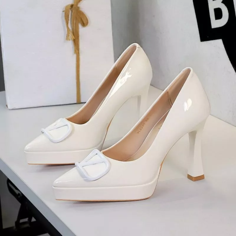 Decolte Donna Eleganti Beige Con Plateau Vernice Tacco Alto 12 cm CF65358