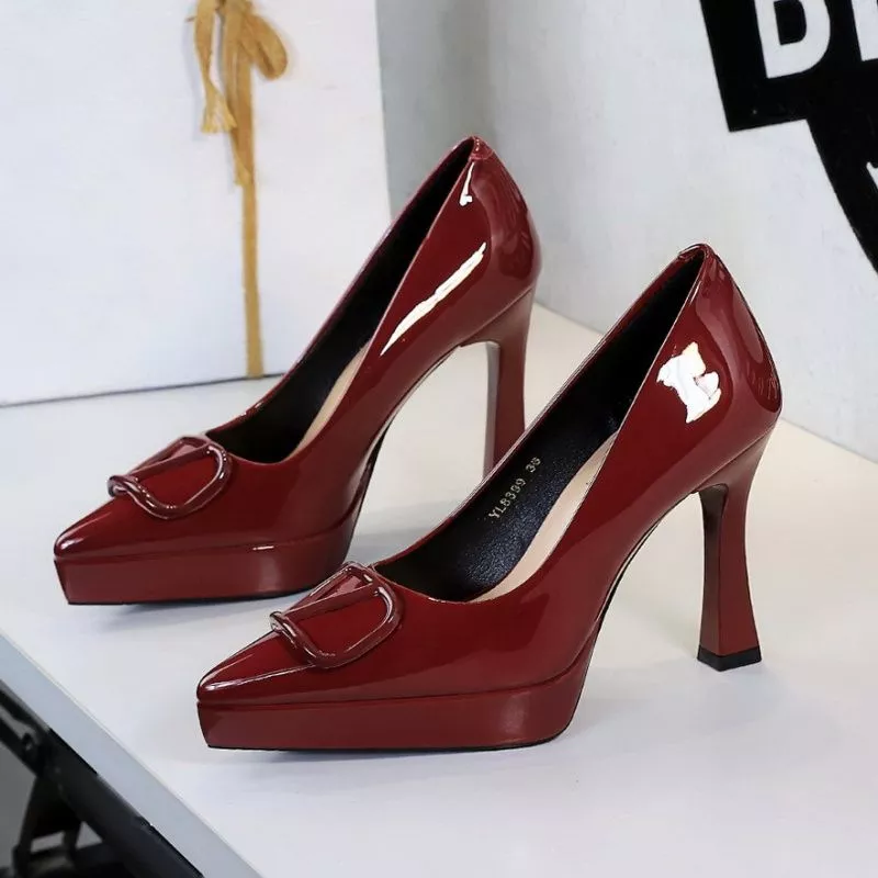 Decolte Donna Eleganti Borgogna Con Plateau Vernice Tacco Alto 12 cm CF65358