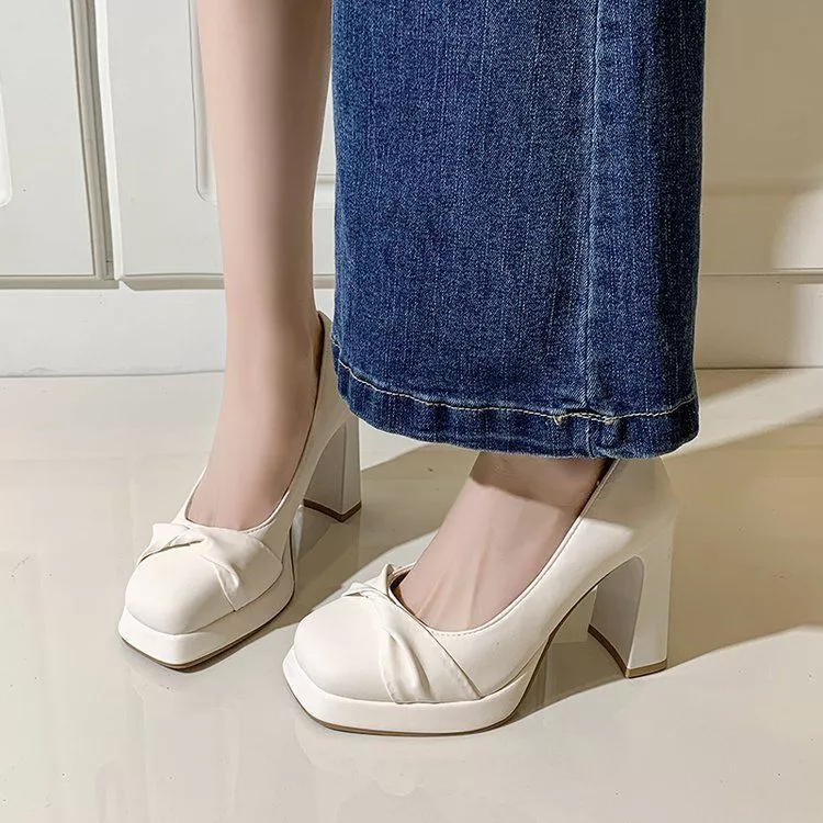 Decolte Donna Con Tacco Alto 10 cm Stile Francese Plateau Eleganti Beige CF65397