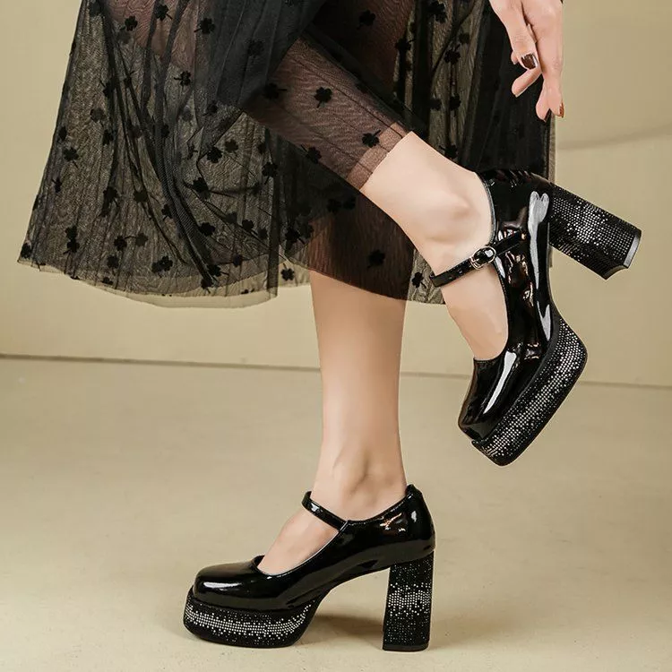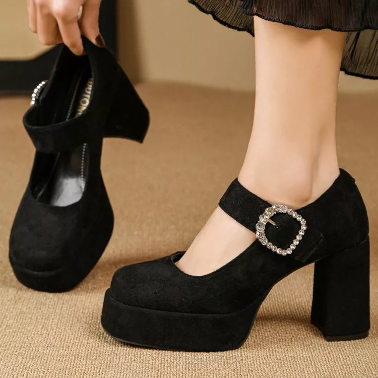 Decolte Platform Con Cinturino Gioiello Tacco 9 Cm Nero Elegante CF67604