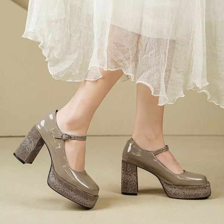 Scarpe Mary Jane Platform Tacco 9 Cm Grigio Scuro Elegante Donna CF67605
