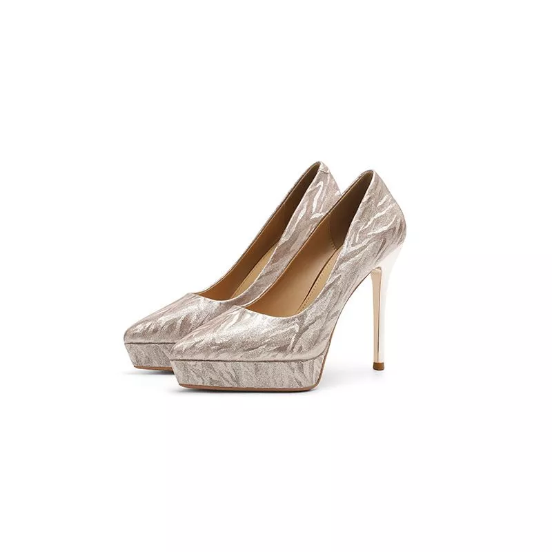 Decolte Donna Champagne Con Plateau Tacco Alto Eleganti Da Cerimonia CF64868