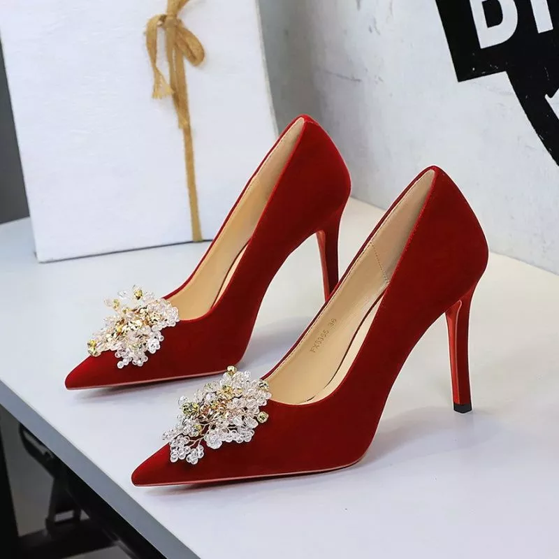 Decolte Donna Eleganti Applicazione Gioiello E Tacco 10 cm Rosso Vino CF65408