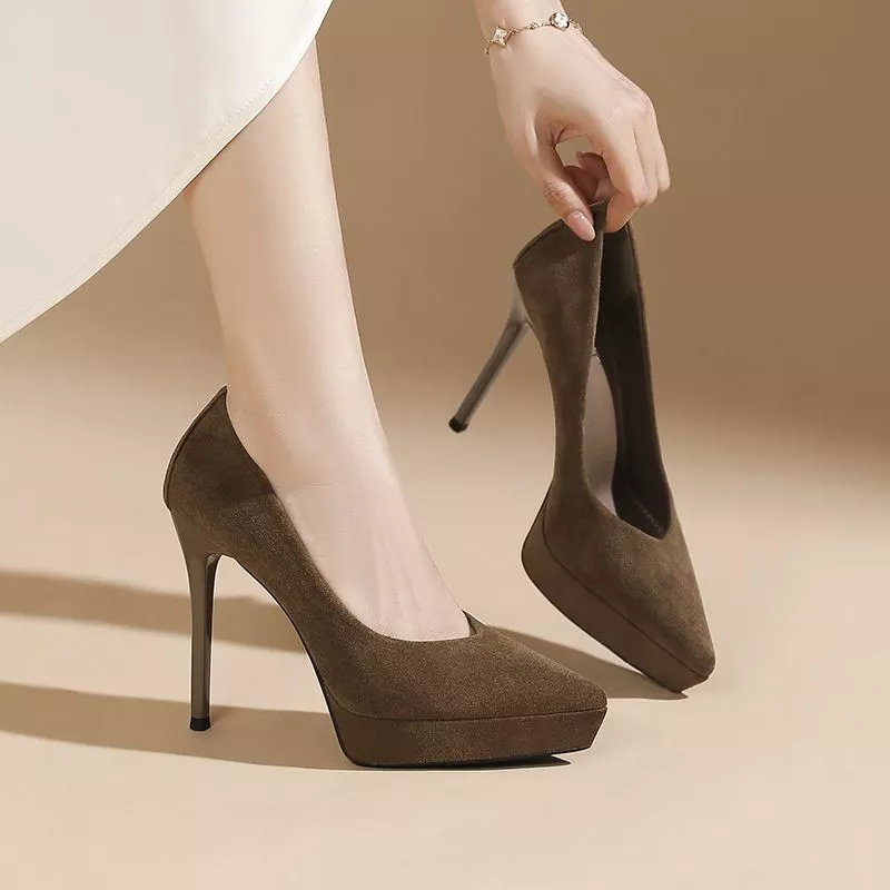 Decolte Donna Marrone Tabacco Plateau E Tacco Alto Eleganti Cerimonia CF64869