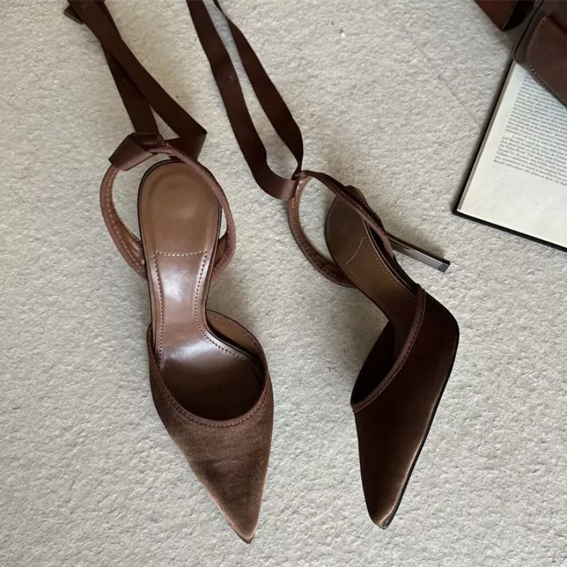 Decolte Donna Marroni Tacco 9 cm Slingback Con Nastro Incrociato Chic CF88449