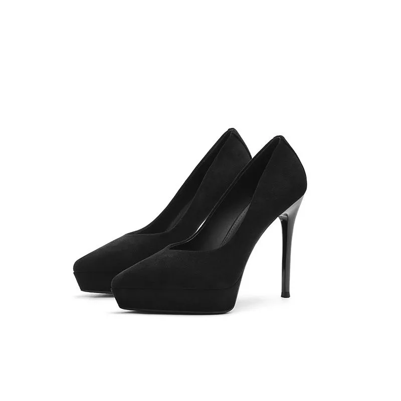 Decolte Donna Nere Effetto Velluto Plateau E Tacco Alto Eleganti Da Sera CF64869
