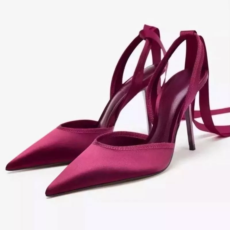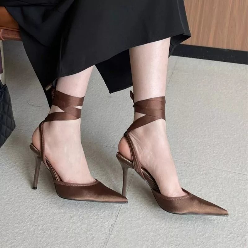 Il punto centrale del modello è il nastro alla caviglia, che avvolge la gamba creando un effetto visivo più sofisticato rispetto ai classici cinturini. Questo elemento non è solo decorativo, ma contribuisce a rendere la scarpa più scenografica e moderna.