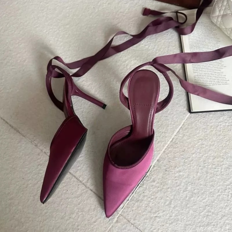 La struttura aperta sul tallone alleggerisce la calzatura, mentre la punta affusolata migliora la percezione della lunghezza della gamba. Il tacco sottile mantiene una linea slanciata ed elegante, ideale per outfit curati e femminili.