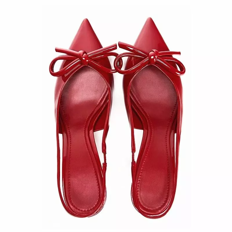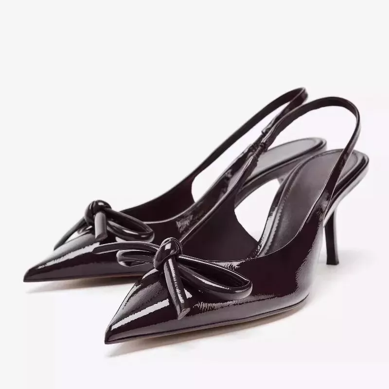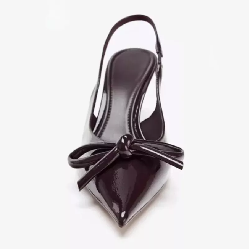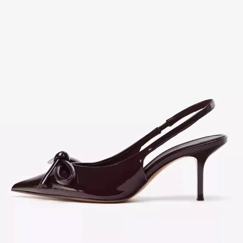 La punta affusolata slancia visivamente il piede, mentre il cinturino posteriore aperto alleggerisce la silhouette, rendendo la scarpa più dinamica e portabile anche per utilizzi prolungati.