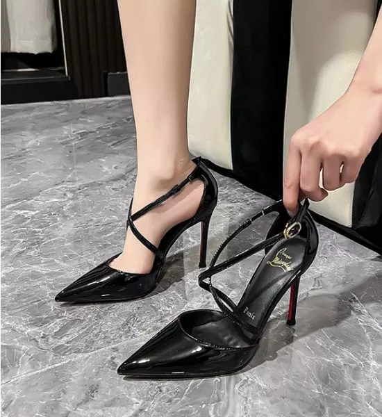 Decolte donna in vernice lucida con cinturino incrociato sul collo del piede e tacco 10 cm sottile effetto slanciato. Un modello femminile e deciso che valorizza la silhouette con una linea affusolata elegante e sensuale.