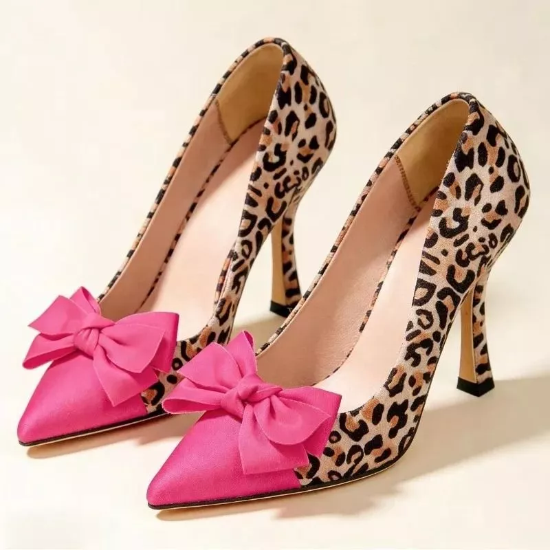 Decolte Eleganti Tacco Alto Leopardate con Fiocco Scarpe a Punta da Sera CF70691