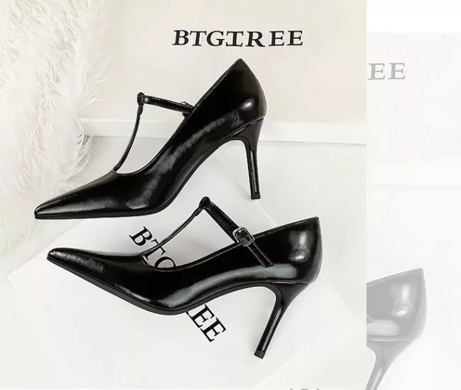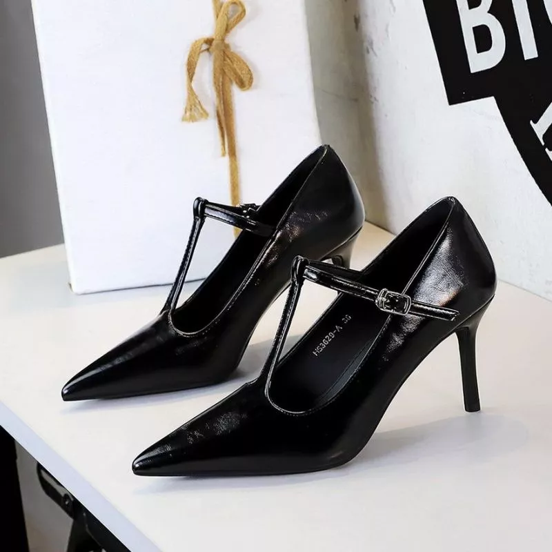 Decolte con tacco sottile da 8 cm e cinturino a T regolabile, perfette per cerimonie, eventi formali e look eleganti da sera. La punta affusolata e la finitura lucida donano uno stile sofisticato, mentre la chiusura con fibbia assicura comfort e stabilità. Disponibili in tre colori moda per completare ogni outfit con classe.