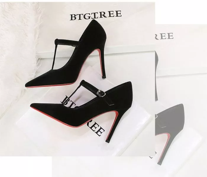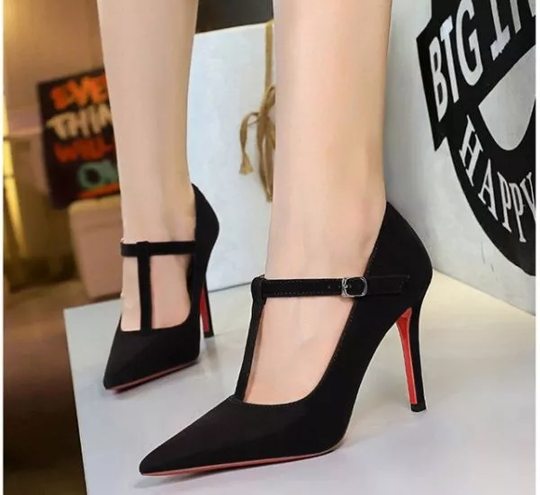 Decolte Nere A Punta Con Cinturino Tacco Alto 10 Cm In Tessuto Elegante CF54367