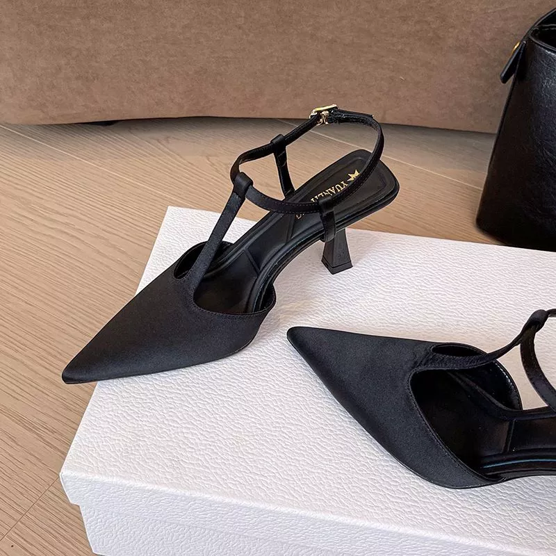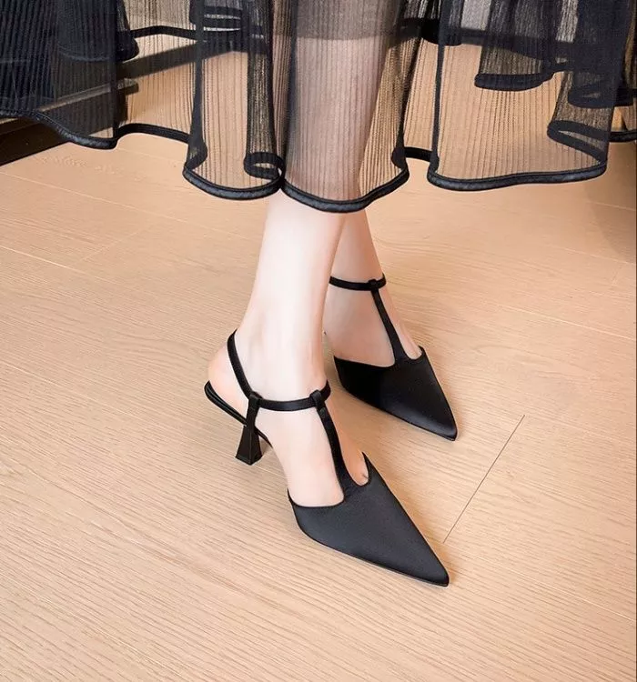 Scarpe slingback eleganti con punta affusolata e cinturino sottile regolabile, arricchite da un tacco medio di 7 cm che unisce stile e comodità. Perfette per cerimonie, eventi formali o serate speciali, sono disponibili in tre varianti: nero, marrone e argento. Un modello versatile e raffinato che completa con eleganza ogni outfit.