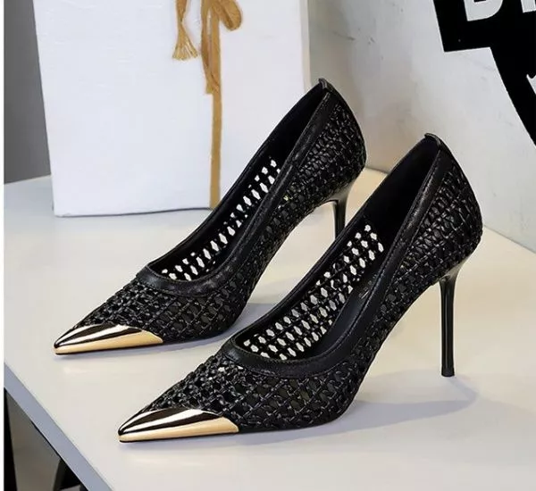 Decolte femminili ed eleganti con lavorazione traforata e punta rinforzata in metallo, pensate per slanciare la silhouette con un tocco moderno e sofisticato. Il tacco alto di 9,5 cm dona slancio e femminilità, rendendole perfette per serate, eventi o cerimonie. Scarpe raffinate che uniscono comfort e design esclusivo, ideali per distinguersi con stile.