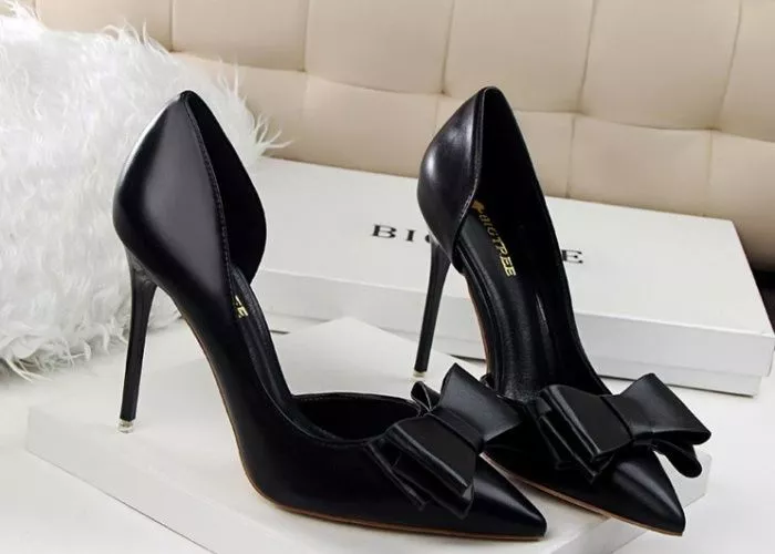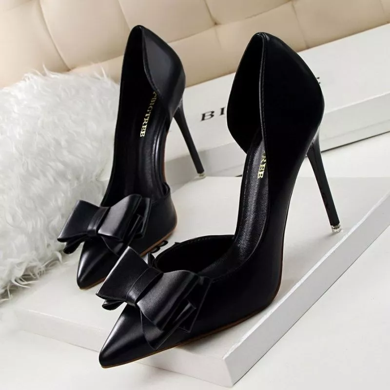 Decolte Nero Eleganti Con Fiocco Scarpe Donna Tacco A Spillo 10,5 Cm CF53020